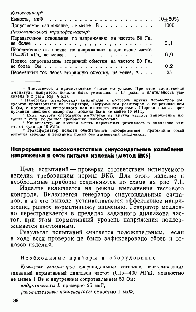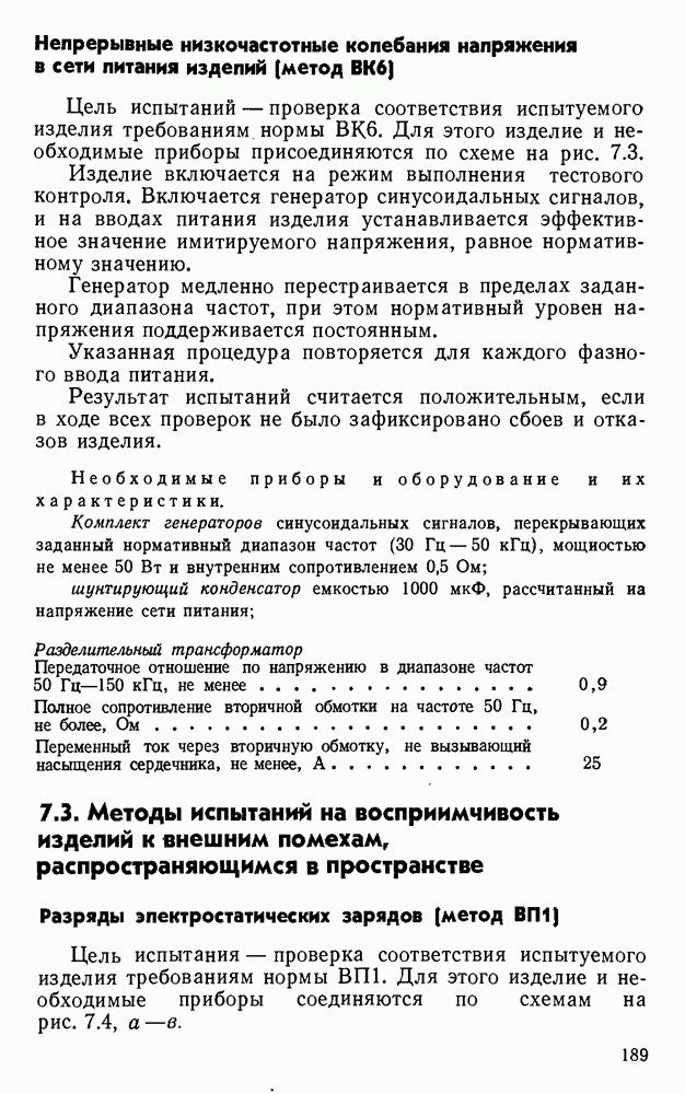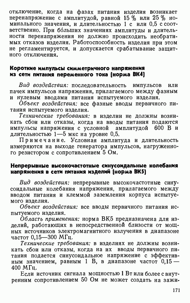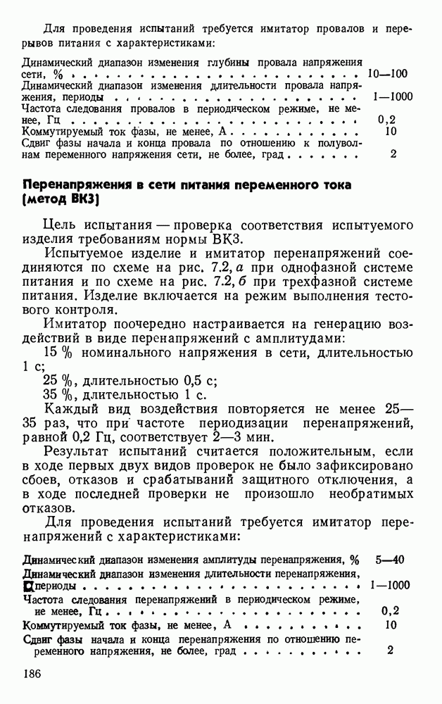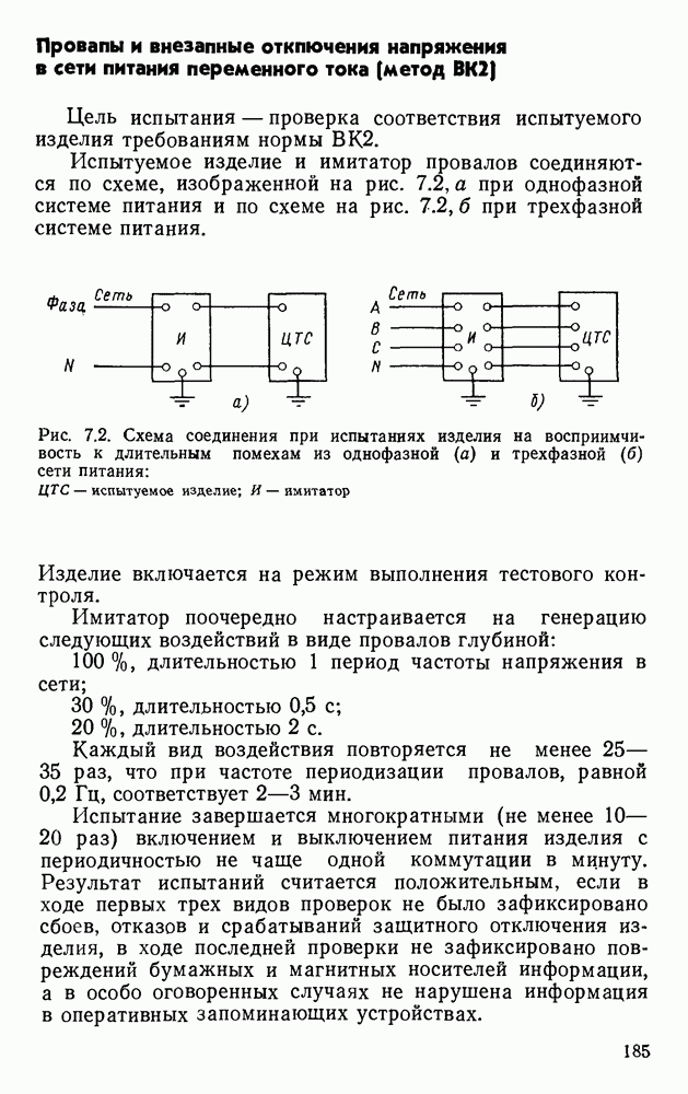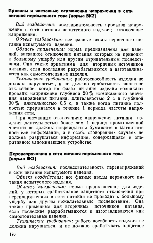 Технические требования: амплитуда импульсов напряжения в сети питания переменного тока изделия, возникающих при коммутациях питания изделия и его частей, не должна превышать 100 В.