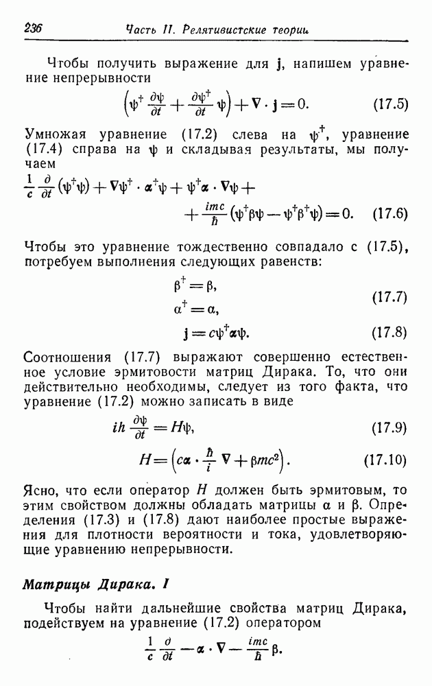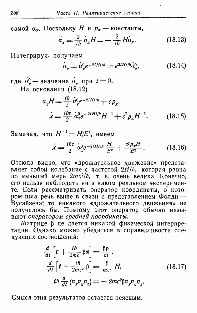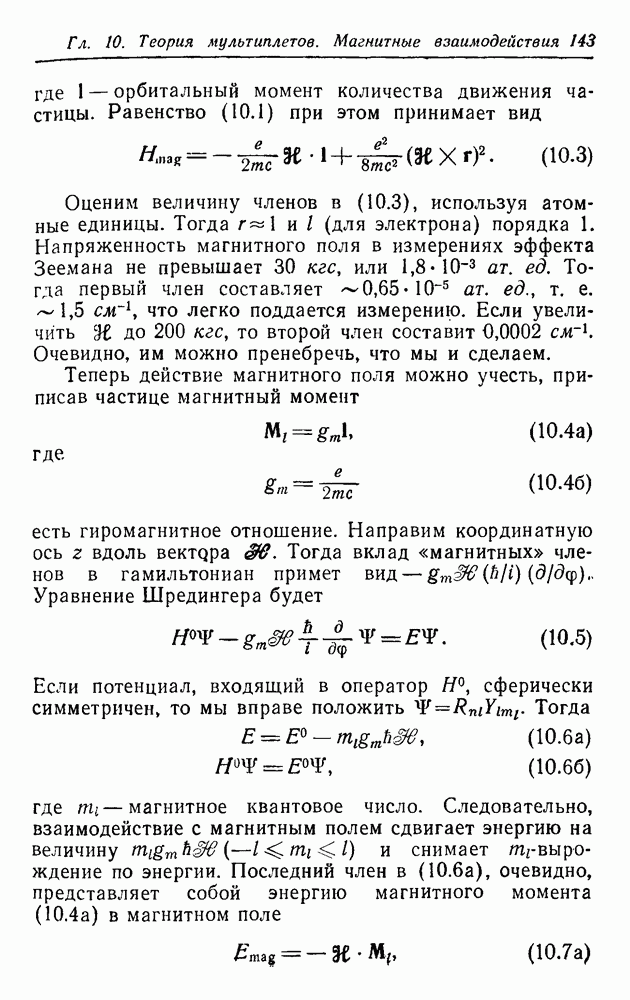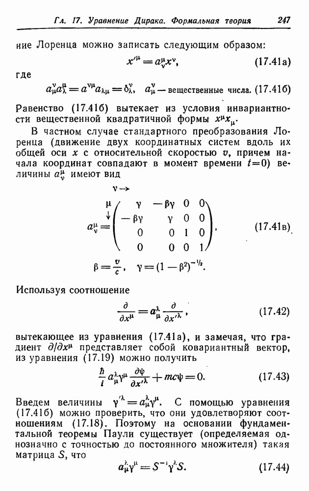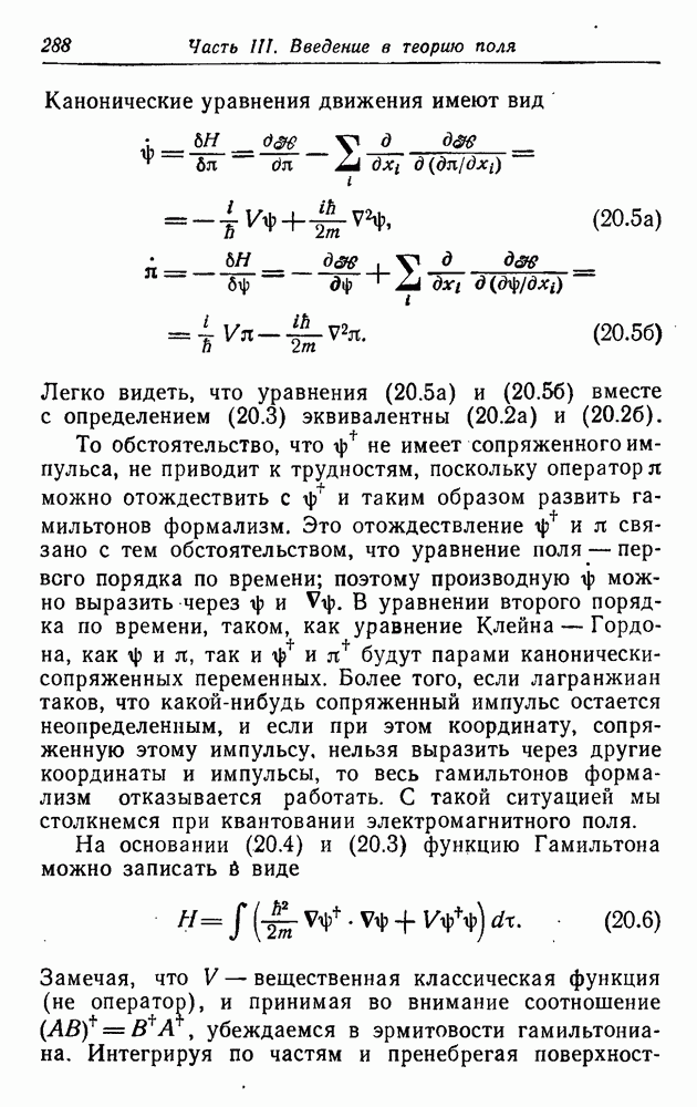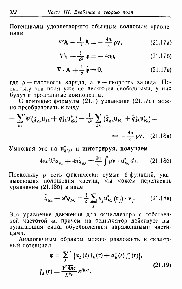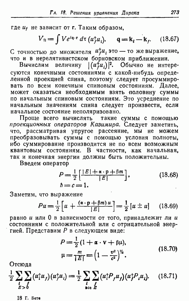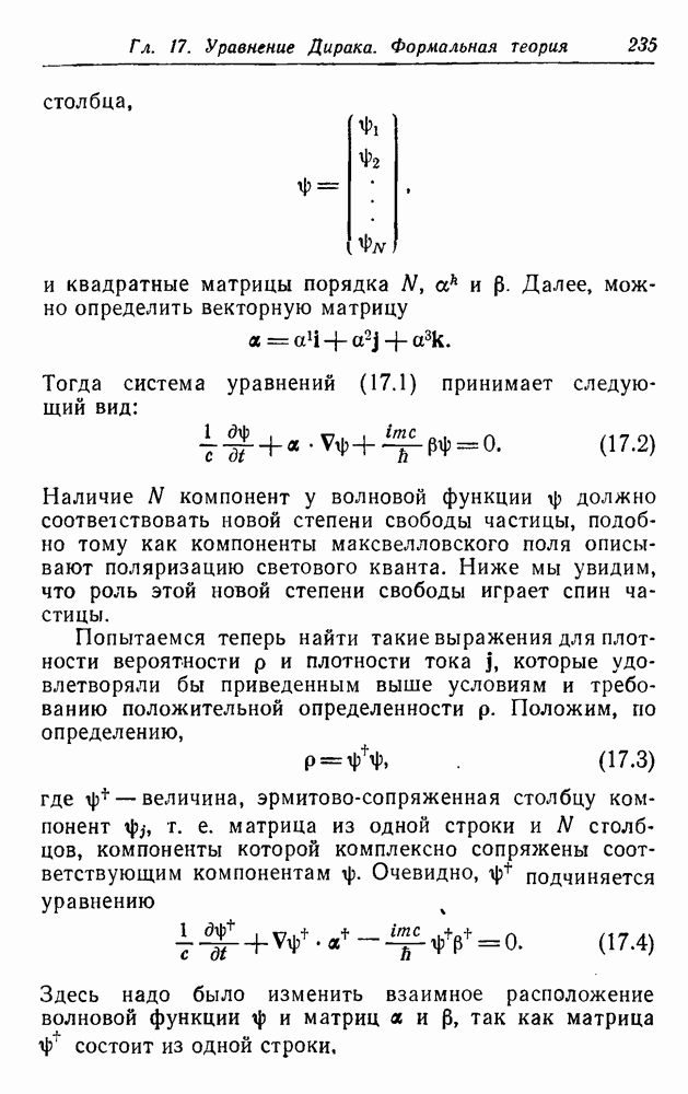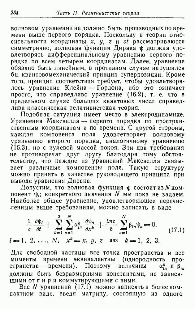 В нерелятивистском приближении Из-за этих затруднений от уравнения Клейна — Гордона сначала отказались. Правильную интерпретацию уравнения Клейна — Гордона дали Паули и Вейсскопф [38]. Они предложили рассматривать это уравнение как классическое уравнение поля (подобно уравнениям электромагнитного поля) и затем проквантовать его; мы рассмотрим эту программу в гл. 19. Тогда становится разумной интерпретация величин Для свободной частицы нет нужды рассматривать решения с отрицательной энергией, ибо если энергия свободной частицы превышает В присутствии внешних полей возможны переходы в состояния с отрицательной энергией Е. Такие состояния, согласно теории Паули и Вейсскопфа, следует понимать как состояния частиц с положительной энергией, но с отрицательным зарядом (если положительные значения Е соответствуют положительному заряду). Переходы из состояния с Взаимодействие с внешним электромагнитным полемЧтобы учесть влияние электромагнитного поля, задаваемого потенциалами