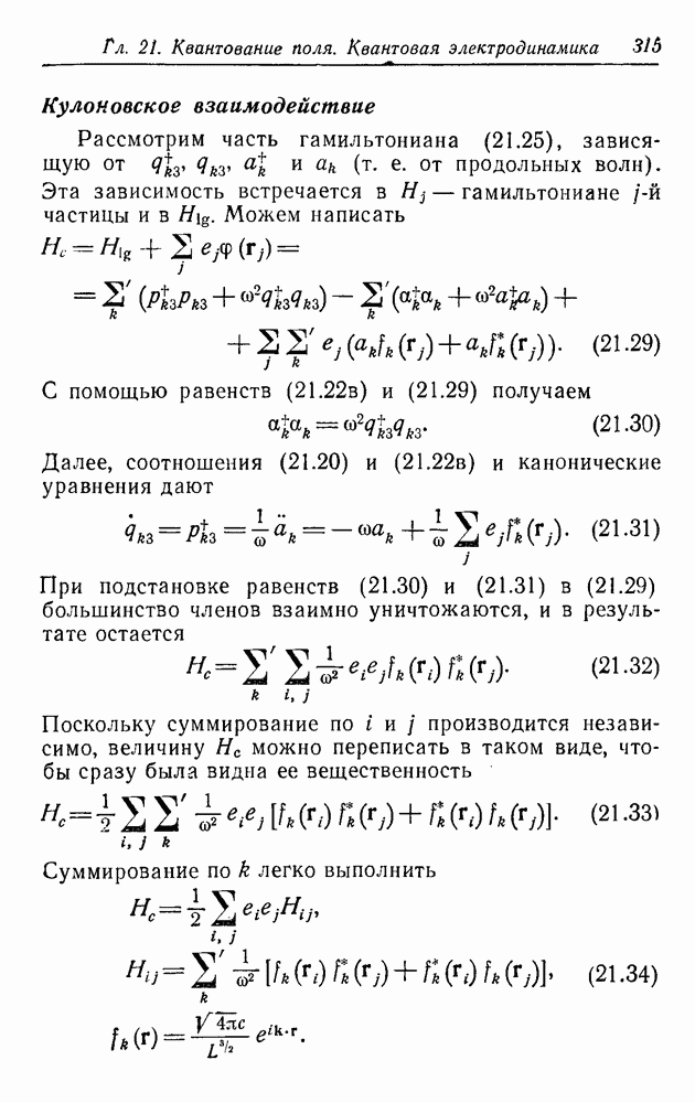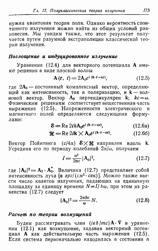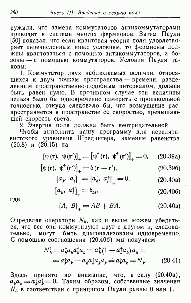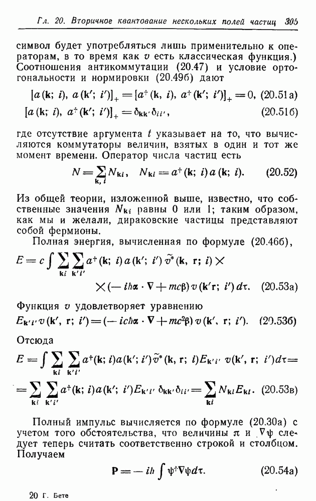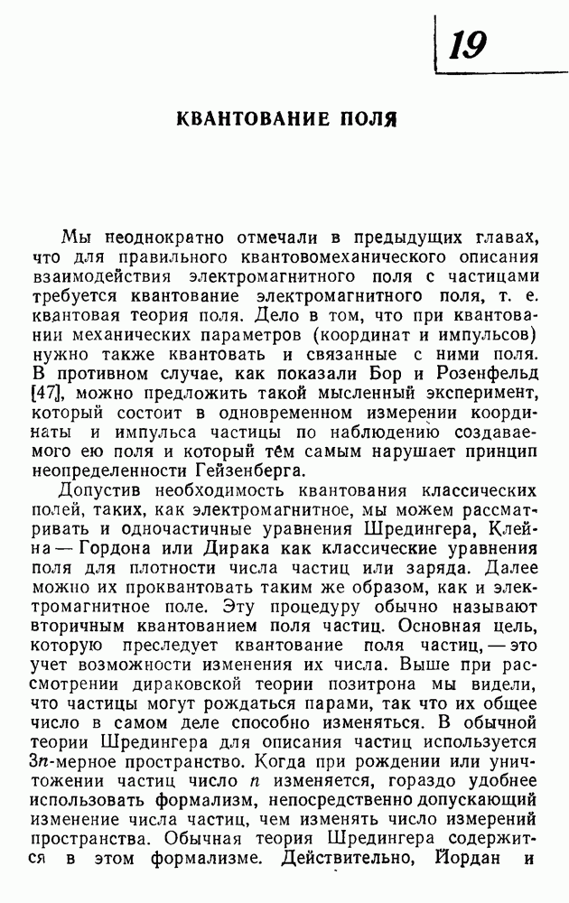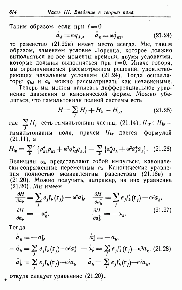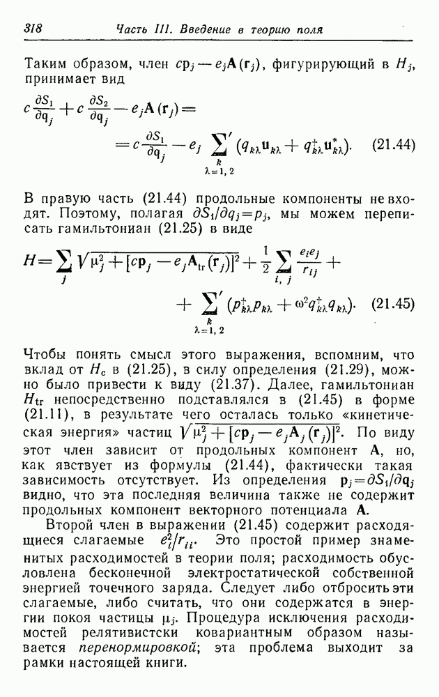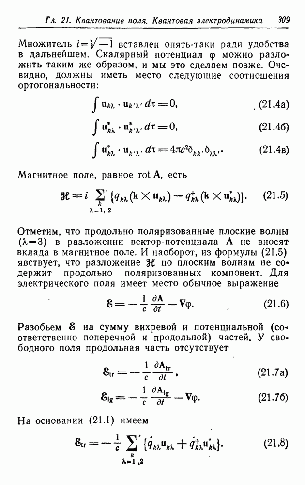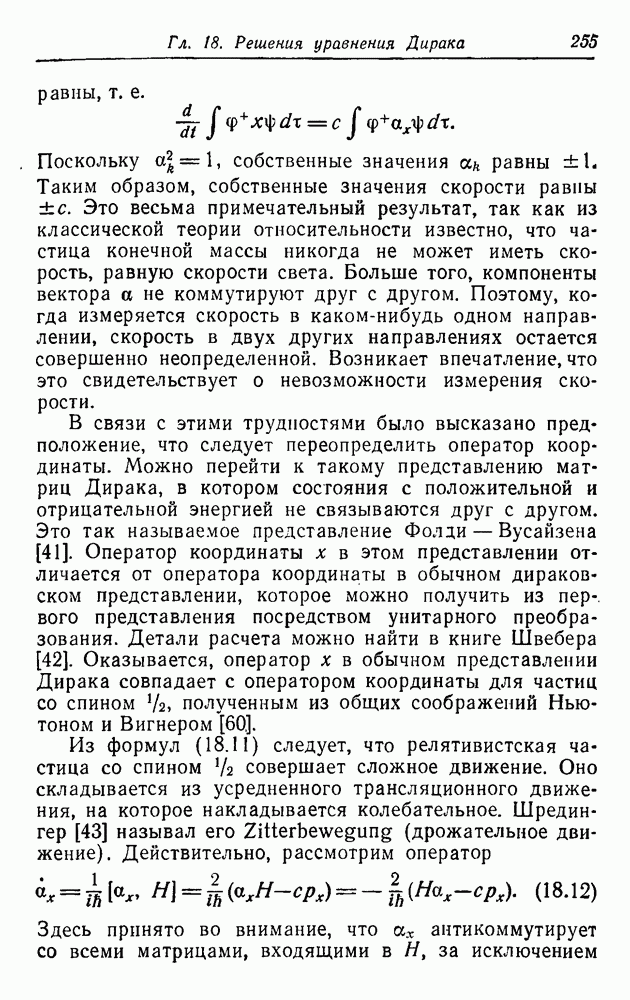 В нерелятивистском приближении Из-за этих затруднений от уравнения Клейна — Гордона сначала отказались. Правильную интерпретацию уравнения Клейна — Гордона дали Паули и Вейсскопф [38]. Они предложили рассматривать это уравнение как классическое уравнение поля (подобно уравнениям электромагнитного поля) и затем проквантовать его; мы рассмотрим эту программу в гл. 19. Тогда становится разумной интерпретация величин Для свободной частицы нет нужды рассматривать решения с отрицательной энергией, ибо если энергия свободной частицы превышает В присутствии внешних полей возможны переходы в состояния с отрицательной энергией Е. Такие состояния, согласно теории Паули и Вейсскопфа, следует понимать как состояния частиц с положительной энергией, но с отрицательным зарядом (если положительные значения Е соответствуют положительному заряду). Переходы из состояния с Взаимодействие с внешним электромагнитным полемЧтобы учесть влияние электромагнитного поля, задаваемого потенциалами