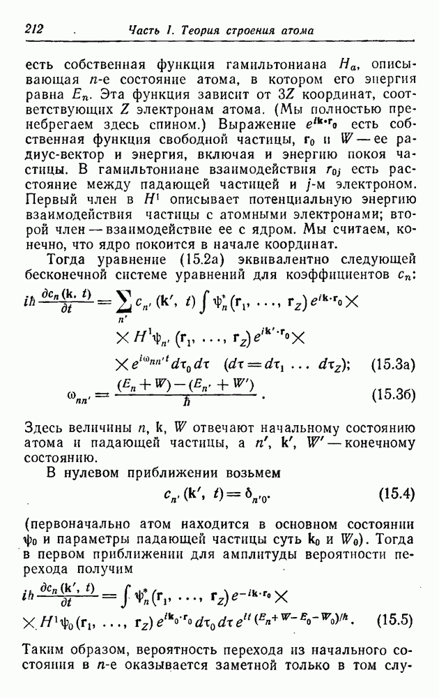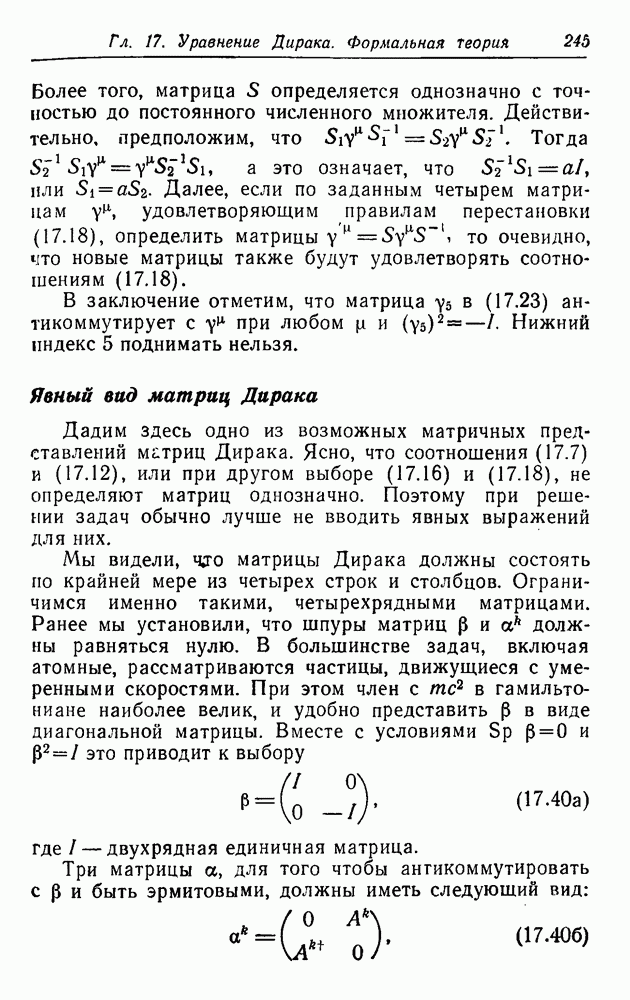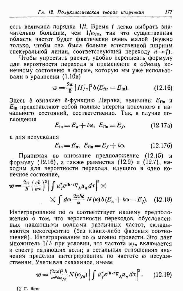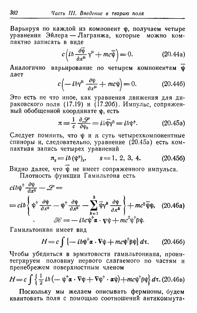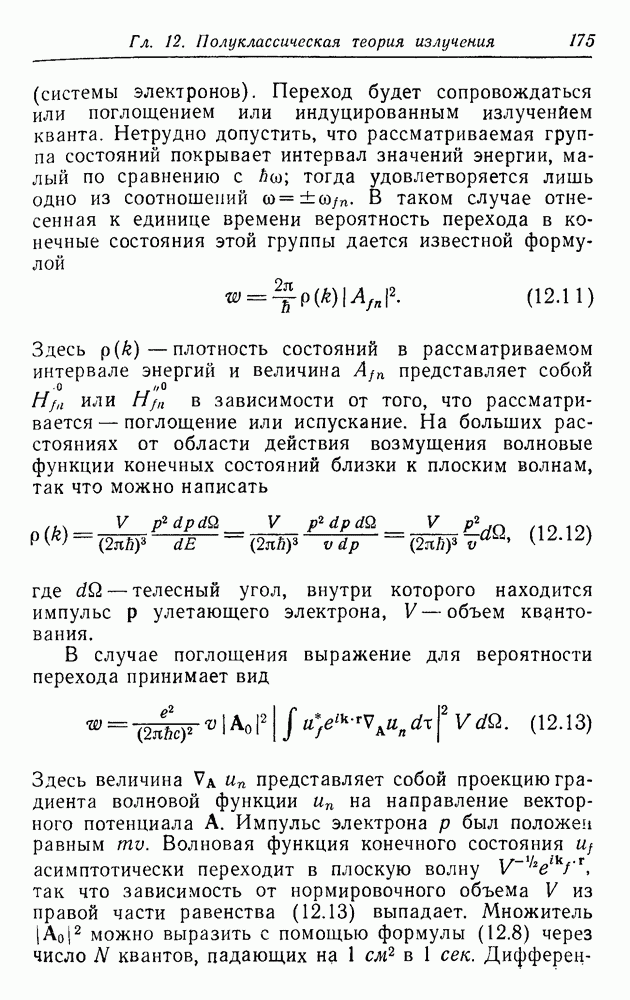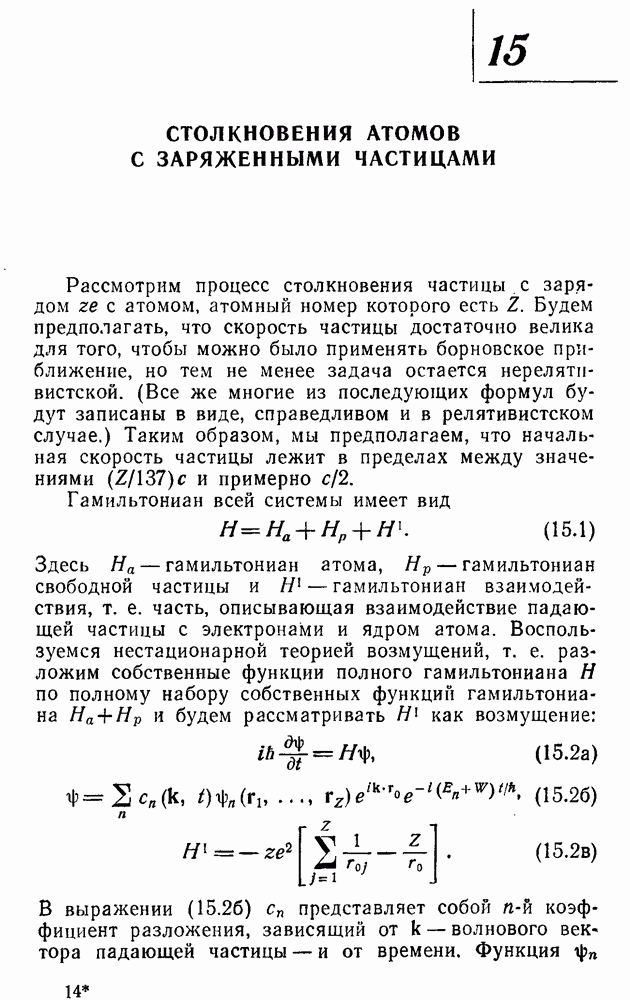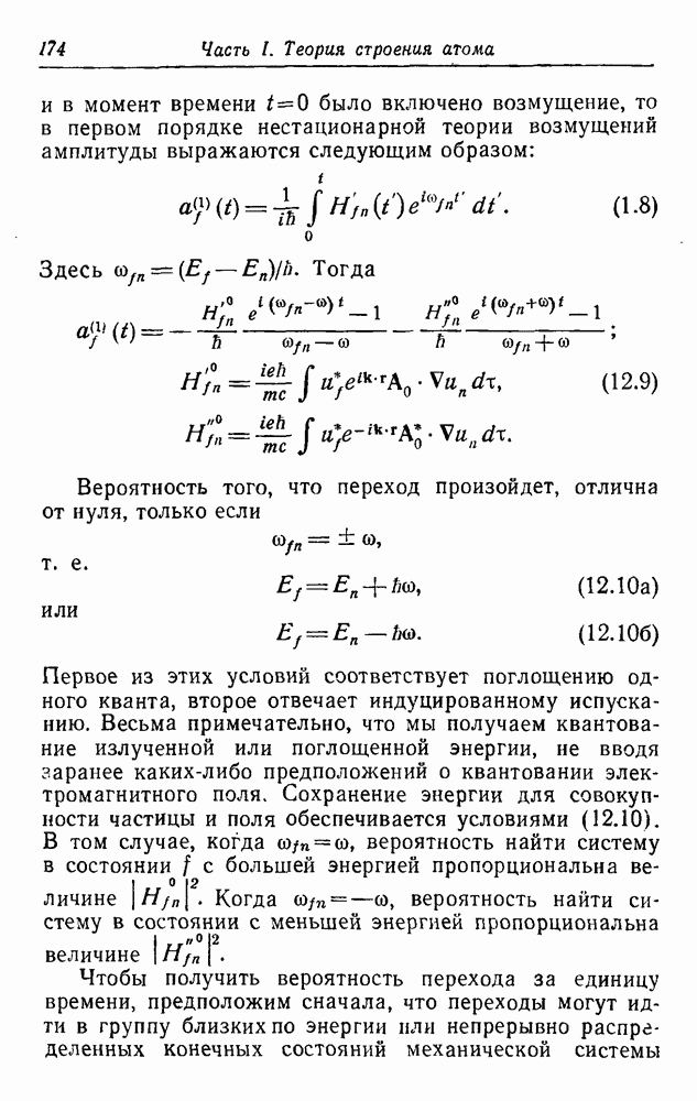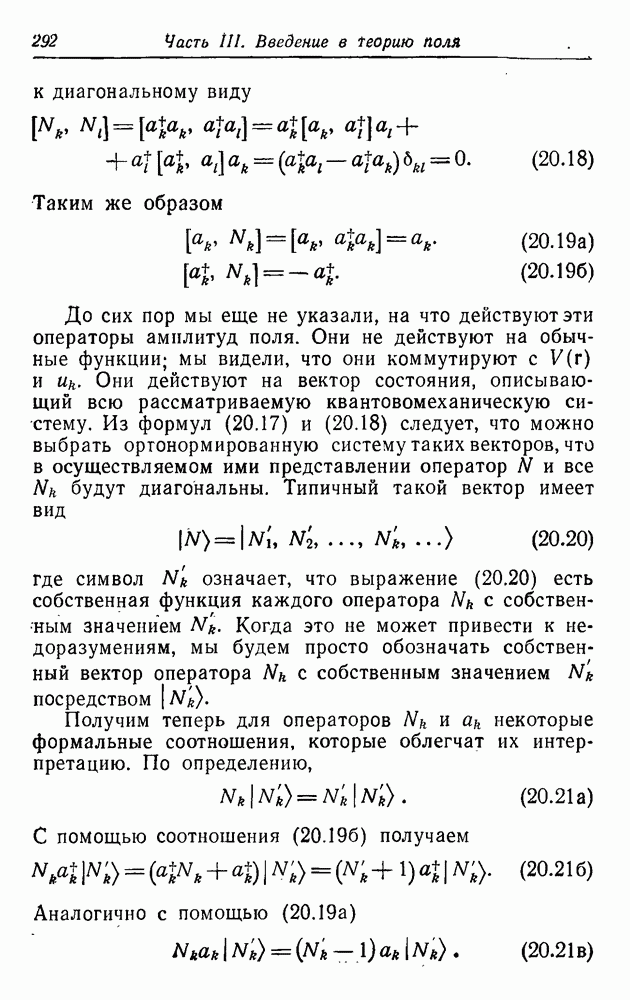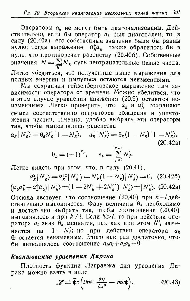 В нерелятивистском приближении Из-за этих затруднений от уравнения Клейна — Гордона сначала отказались. Правильную интерпретацию уравнения Клейна — Гордона дали Паули и Вейсскопф [38]. Они предложили рассматривать это уравнение как классическое уравнение поля (подобно уравнениям электромагнитного поля) и затем проквантовать его; мы рассмотрим эту программу в гл. 19. Тогда становится разумной интерпретация величин Для свободной частицы нет нужды рассматривать решения с отрицательной энергией, ибо если энергия свободной частицы превышает В присутствии внешних полей возможны переходы в состояния с отрицательной энергией Е. Такие состояния, согласно теории Паули и Вейсскопфа, следует понимать как состояния частиц с положительной энергией, но с отрицательным зарядом (если положительные значения Е соответствуют положительному заряду). Переходы из состояния с Взаимодействие с внешним электромагнитным полемЧтобы учесть влияние электромагнитного поля, задаваемого потенциалами
