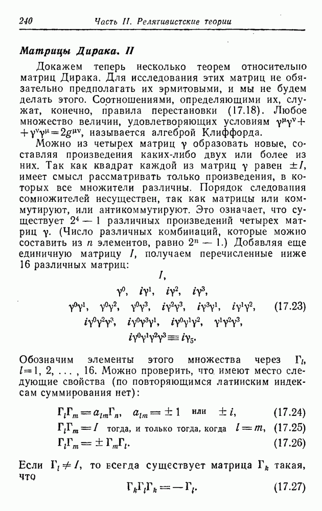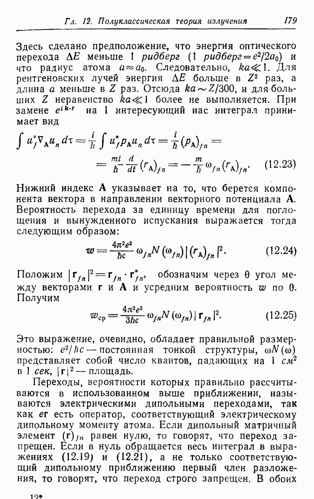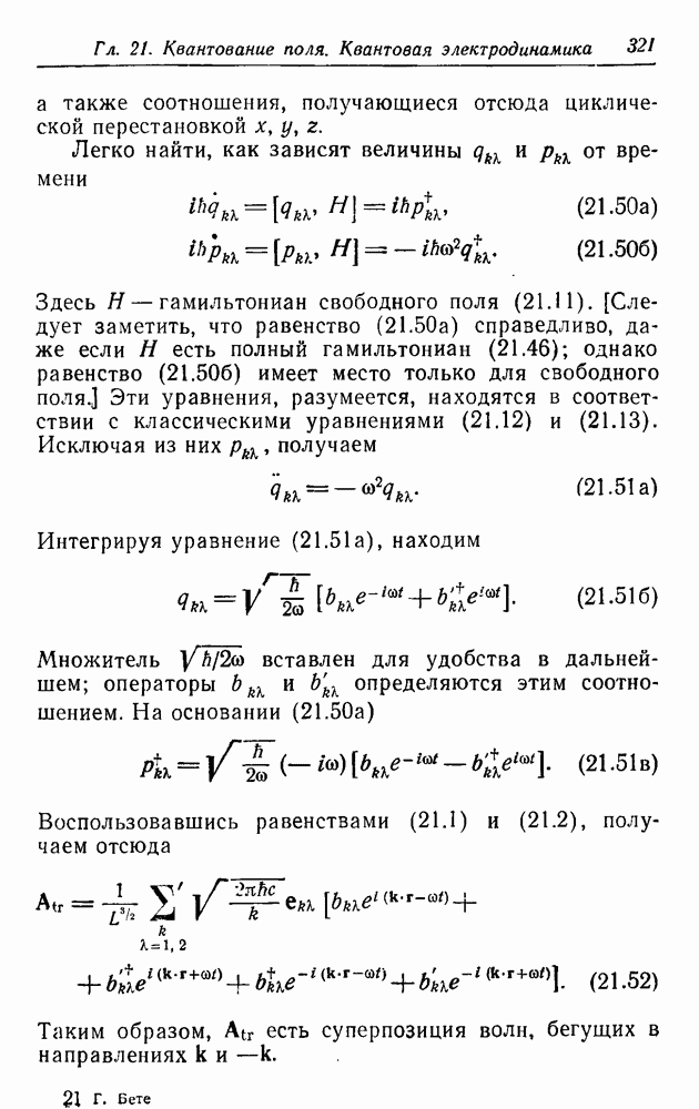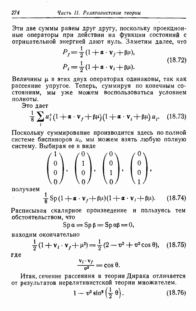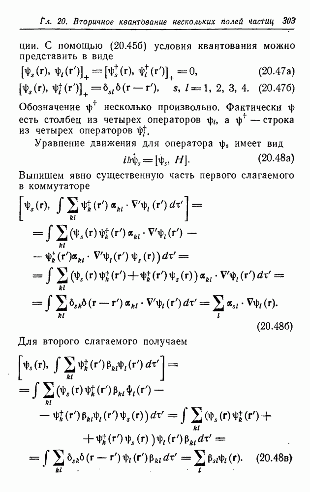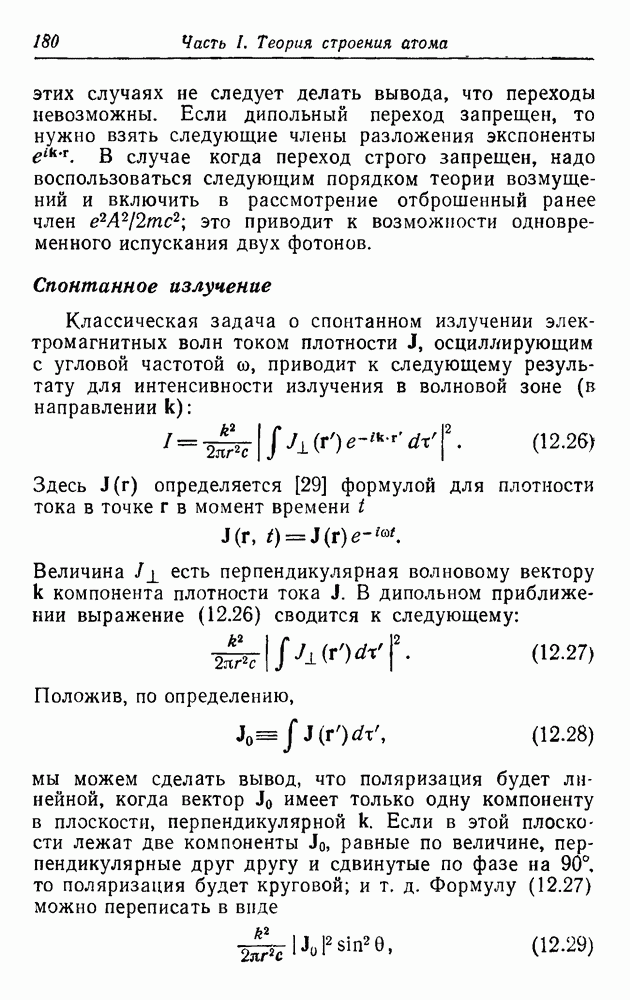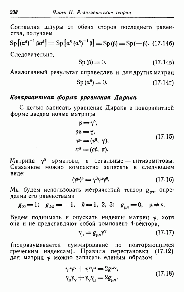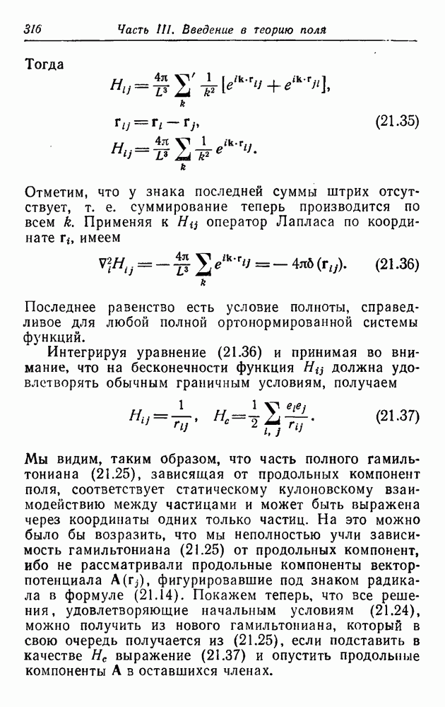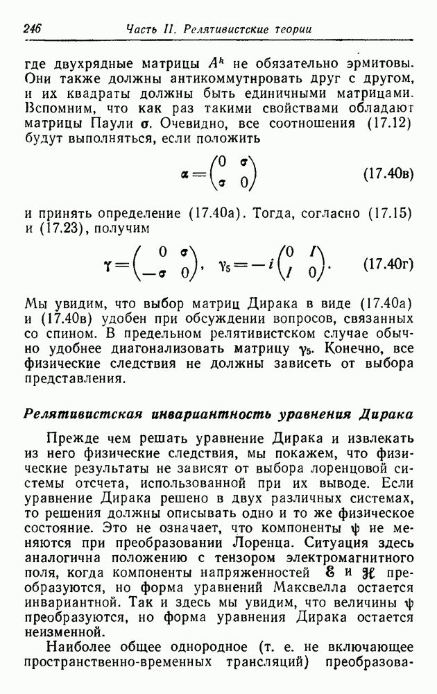 В нерелятивистском приближении Из-за этих затруднений от уравнения Клейна — Гордона сначала отказались. Правильную интерпретацию уравнения Клейна — Гордона дали Паули и Вейсскопф [38]. Они предложили рассматривать это уравнение как классическое уравнение поля (подобно уравнениям электромагнитного поля) и затем проквантовать его; мы рассмотрим эту программу в гл. 19. Тогда становится разумной интерпретация величин Для свободной частицы нет нужды рассматривать решения с отрицательной энергией, ибо если энергия свободной частицы превышает В присутствии внешних полей возможны переходы в состояния с отрицательной энергией Е. Такие состояния, согласно теории Паули и Вейсскопфа, следует понимать как состояния частиц с положительной энергией, но с отрицательным зарядом (если положительные значения Е соответствуют положительному заряду). Переходы из состояния с Взаимодействие с внешним электромагнитным полемЧтобы учесть влияние электромагнитного поля, задаваемого потенциалами