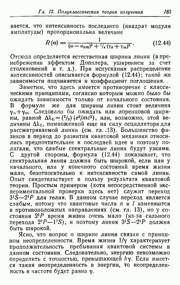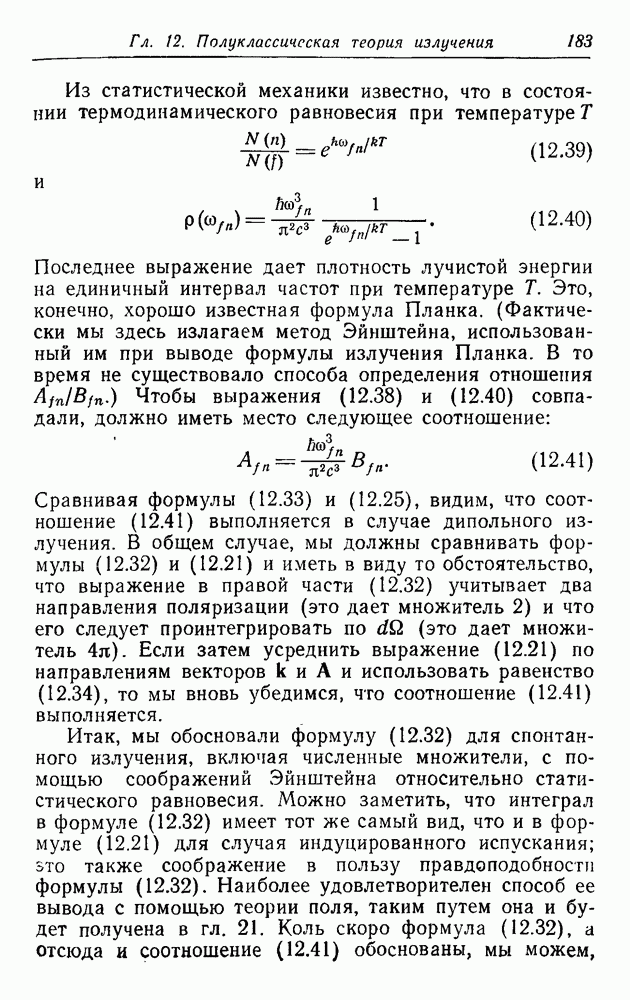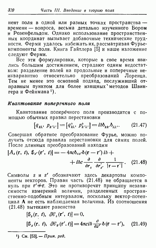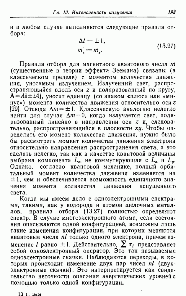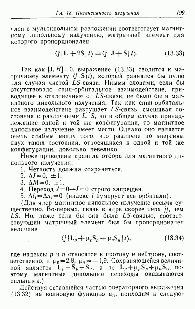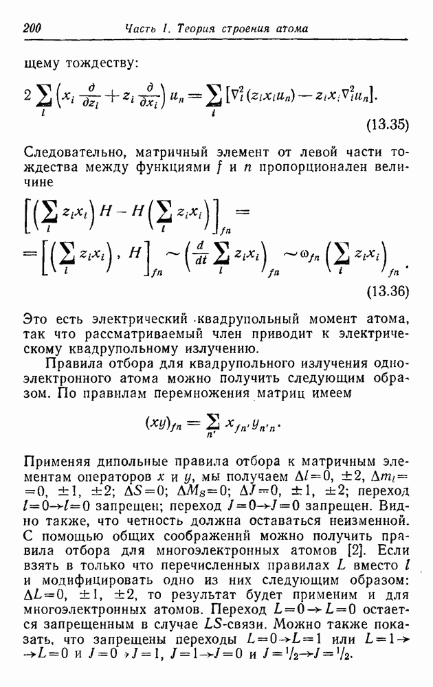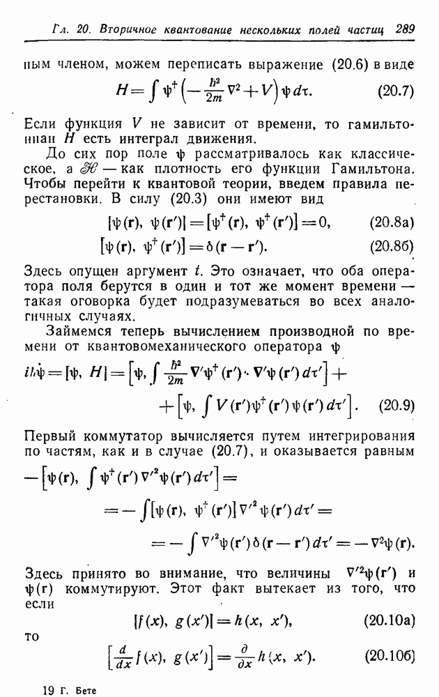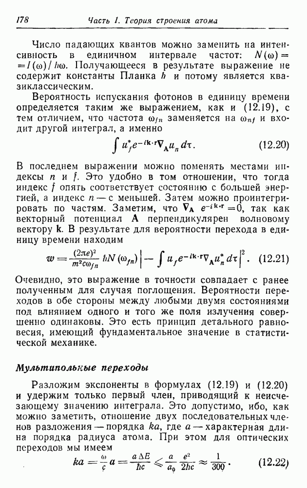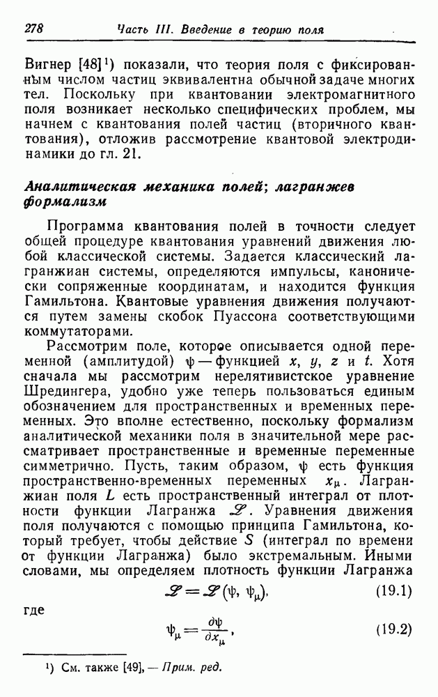 В нерелятивистском приближении Из-за этих затруднений от уравнения Клейна — Гордона сначала отказались. Правильную интерпретацию уравнения Клейна — Гордона дали Паули и Вейсскопф [38]. Они предложили рассматривать это уравнение как классическое уравнение поля (подобно уравнениям электромагнитного поля) и затем проквантовать его; мы рассмотрим эту программу в гл. 19. Тогда становится разумной интерпретация величин Для свободной частицы нет нужды рассматривать решения с отрицательной энергией, ибо если энергия свободной частицы превышает В присутствии внешних полей возможны переходы в состояния с отрицательной энергией Е. Такие состояния, согласно теории Паули и Вейсскопфа, следует понимать как состояния частиц с положительной энергией, но с отрицательным зарядом (если положительные значения Е соответствуют положительному заряду). Переходы из состояния с Взаимодействие с внешним электромагнитным полемЧтобы учесть влияние электромагнитного поля, задаваемого потенциалами