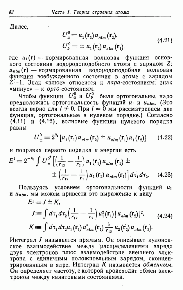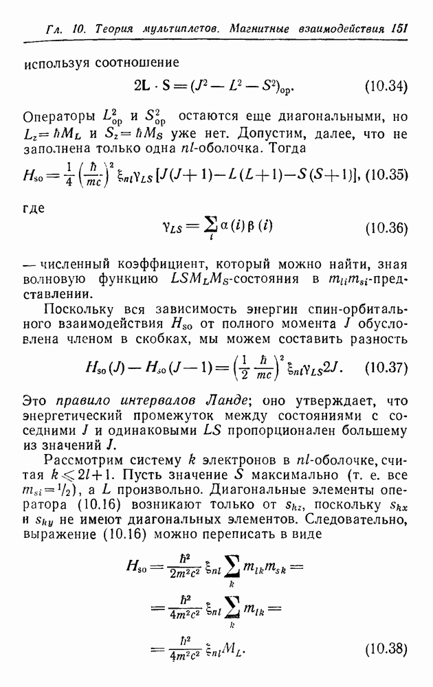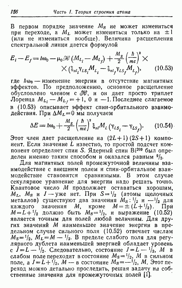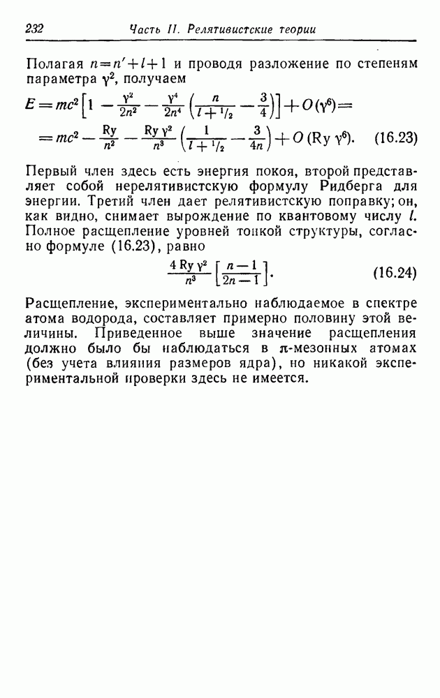 Первый член здесь есть энергия покоя, второй представляет собой нерелятивистскую формулу Ридберга для энергии. Третий член дает релятивистскую поправку; он, как видно, снимает вырождение по квантовому числу I. Полное расщепление уровней тонкой структуры, согласно формуле (16.23), равно