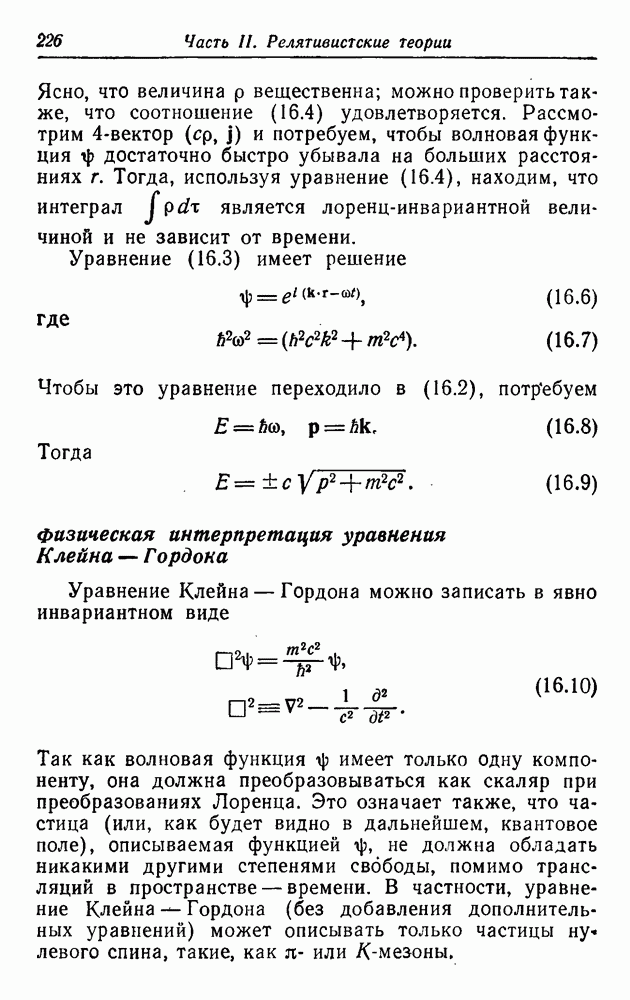 Часть II. РЕЛЯТИВИСТСКИЕ ТЕОРИИ16. УРАВНЕНИЕ КЛЕЙНА—ГОРДОНАНерелятивисткое уравнение Шредингера для свободной частицы можно получить, если заменить Е на
