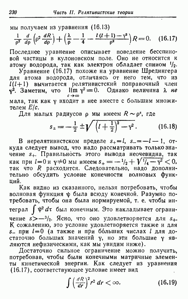Последнее уравнение описывает поведение бесспиновой частицы в кулоновском поле. Оно не относится к атому водорода, так как электрон обладает спином Уравнение (16.17) похоже на уравнение Шредингера для атома водорода, отличаясь от него тем, что из Для малых радиусов