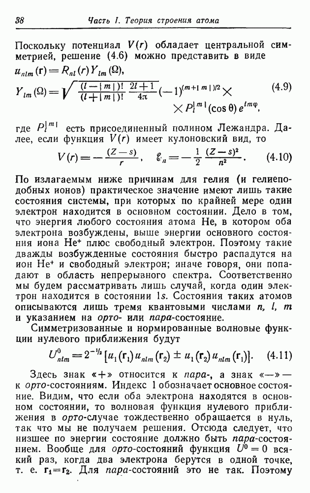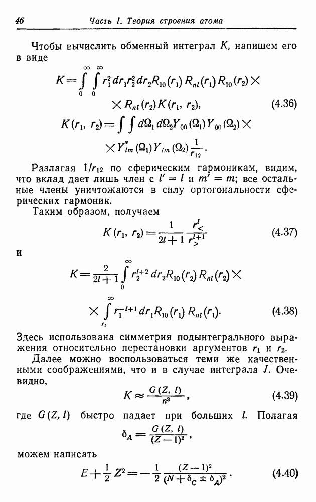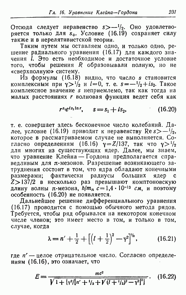 Отсюда следует неравенство Таким путем мы оставляем одно, и только одно, решение радиального уравнения (16.17) для каждого значения I. Это есть необходимое и достаточное условие того, чтобы решения R образовывали полную, но не «сверхполную» систему. Из формулы (16.18) видно, что число s становится комплексным при