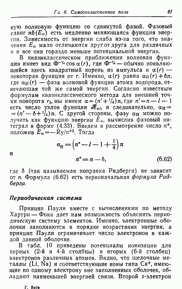 т. е. совершает здесь бесконечное число колебаний. Далее, условие (16.19) приводит к неравенству Дальнейшее решение дифференциального уравнения (16.17) проводится с помощью обычного метода рядов. Требуется, чтобы ряд обрывался на некотором конечном числе членов; это имеет место в том, и только в том, случае, когда