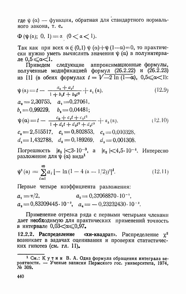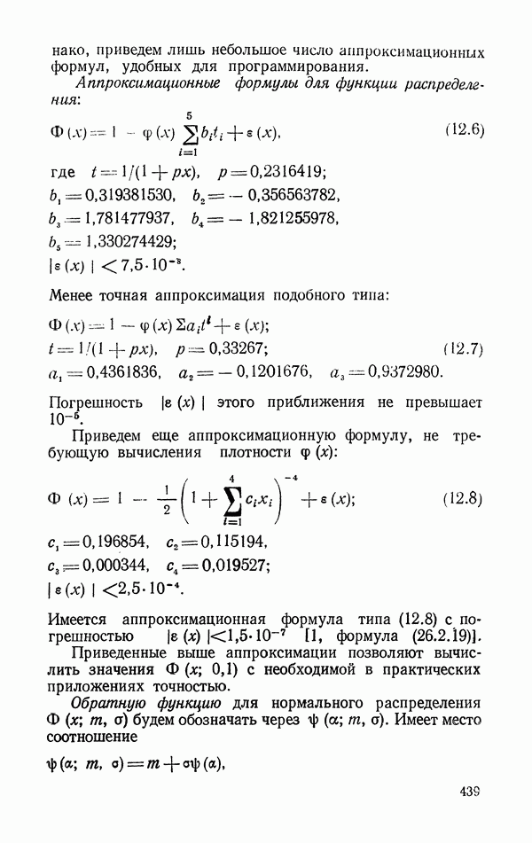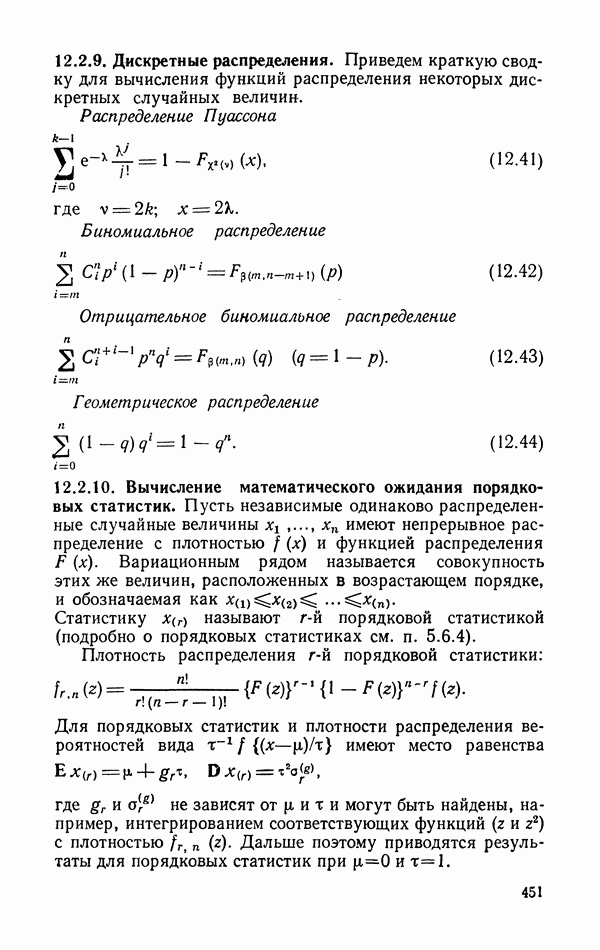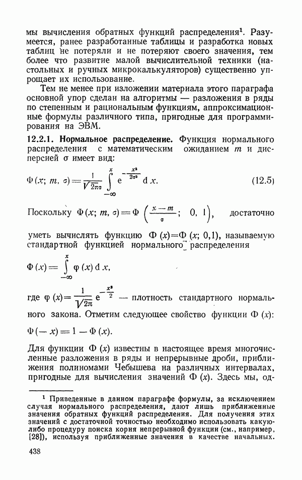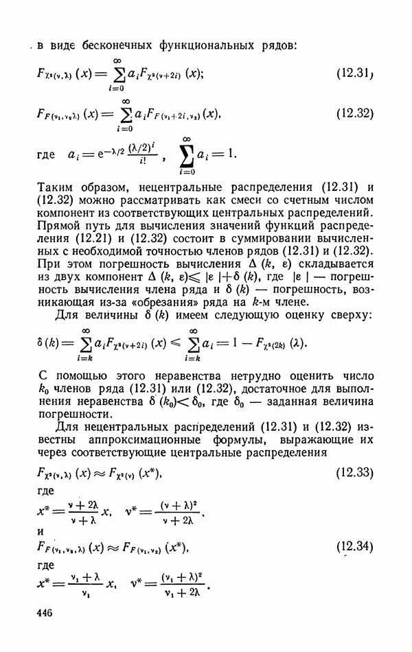 В общем случае основой для вычисления значений функции распределения (12.12) являются разложения в ряды. Приведем два разложения в бесконечные степенные ряды (см. [1 (26.4.6), (26.4.7)]), сходящиеся при всех
