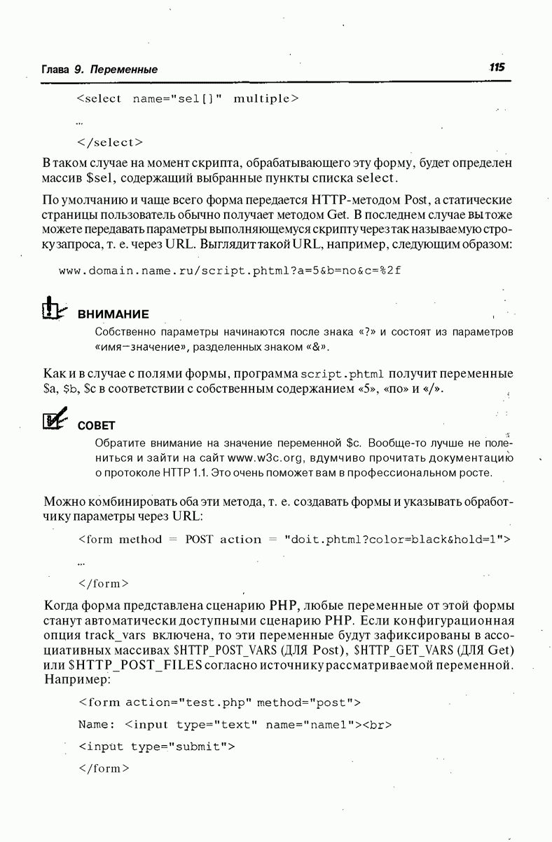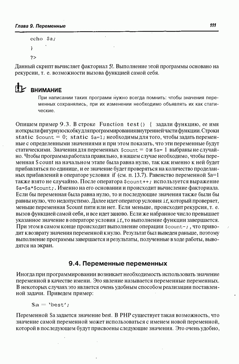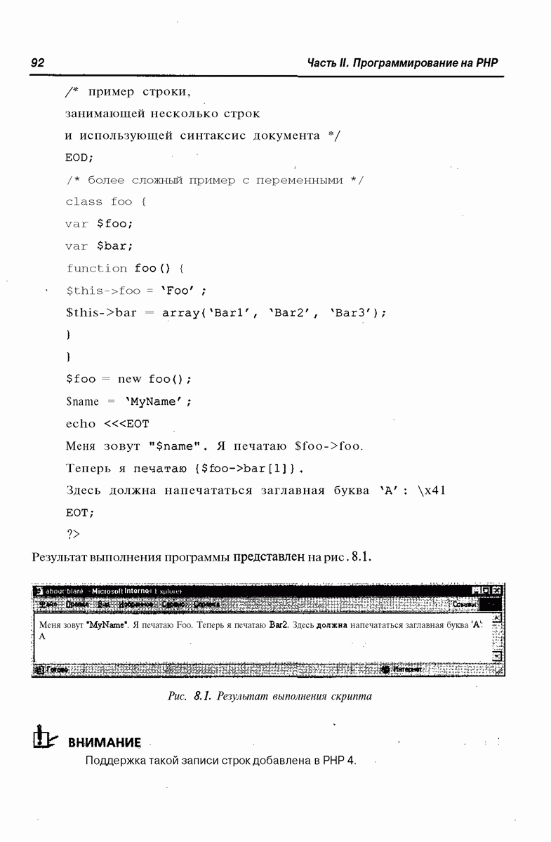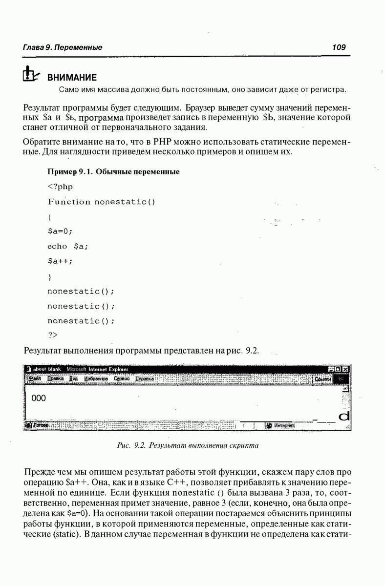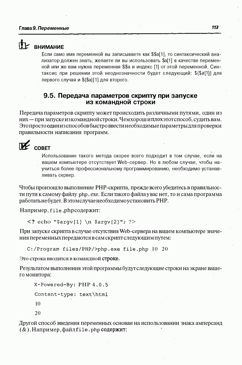 Возможность однозначно идентифицировать переменную позволила создателям РНР дать возможность программистам использовать переменные непосредственно внутри строк.