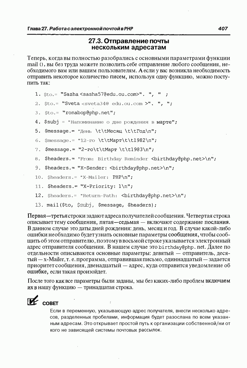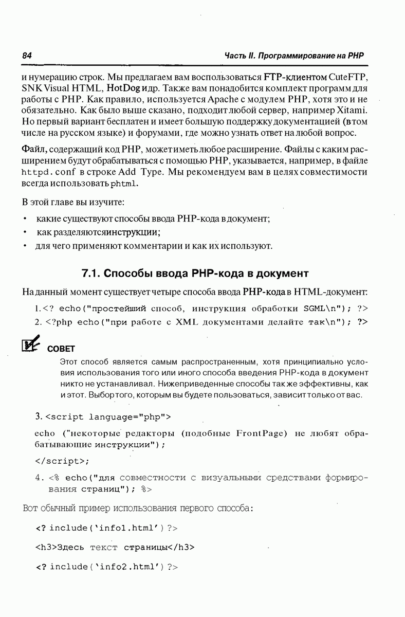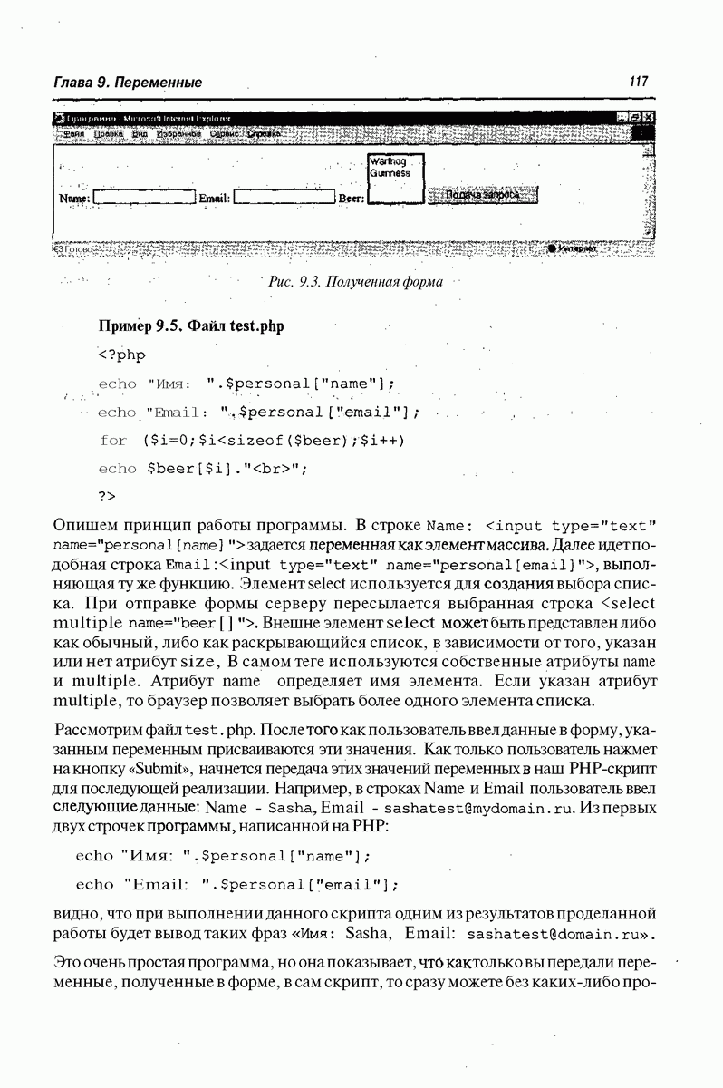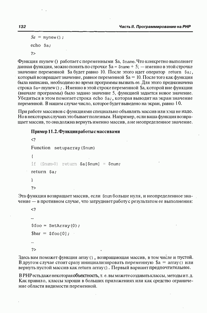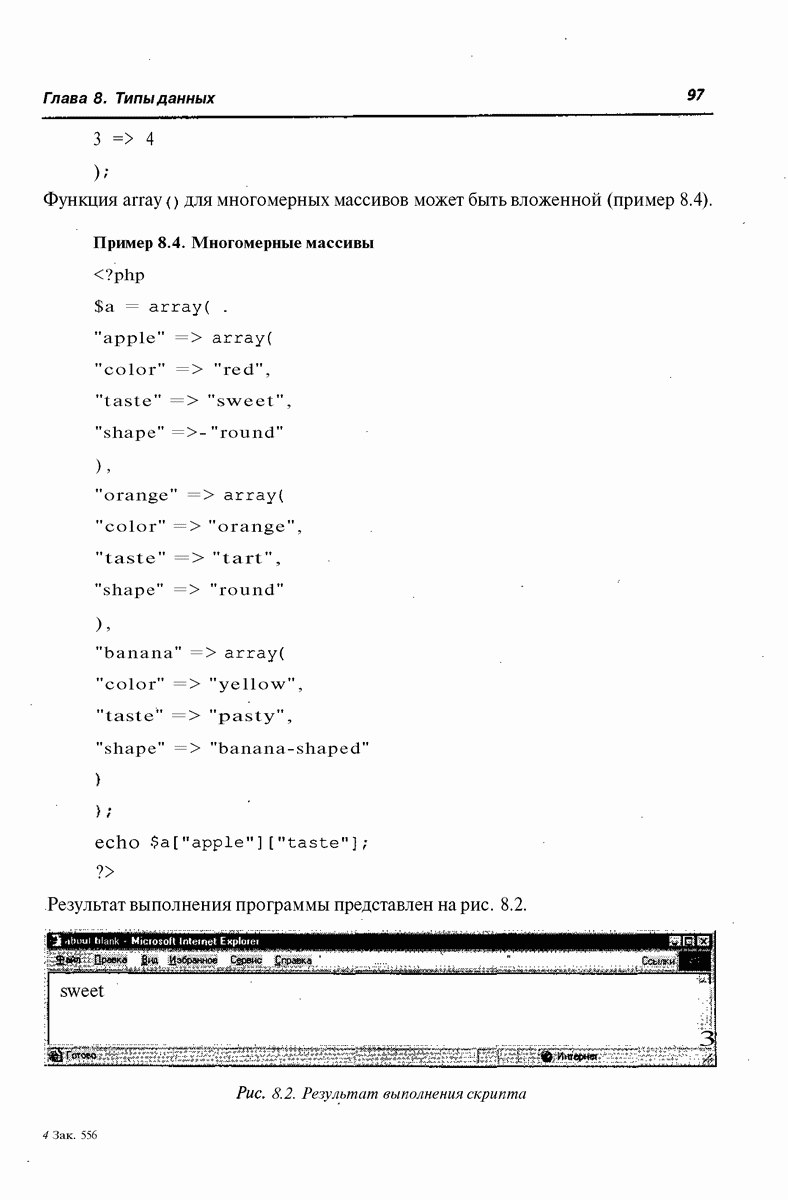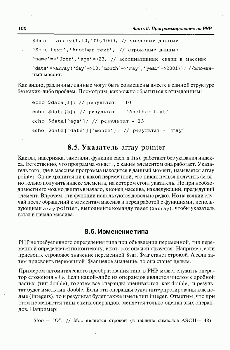 РНР поддерживает как скалярные, так и ассоциативные массивы. В отличие от других языков РНР позволяет задавать массивы практически любой сложности непосредственно в теле самой программы.