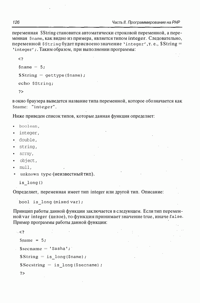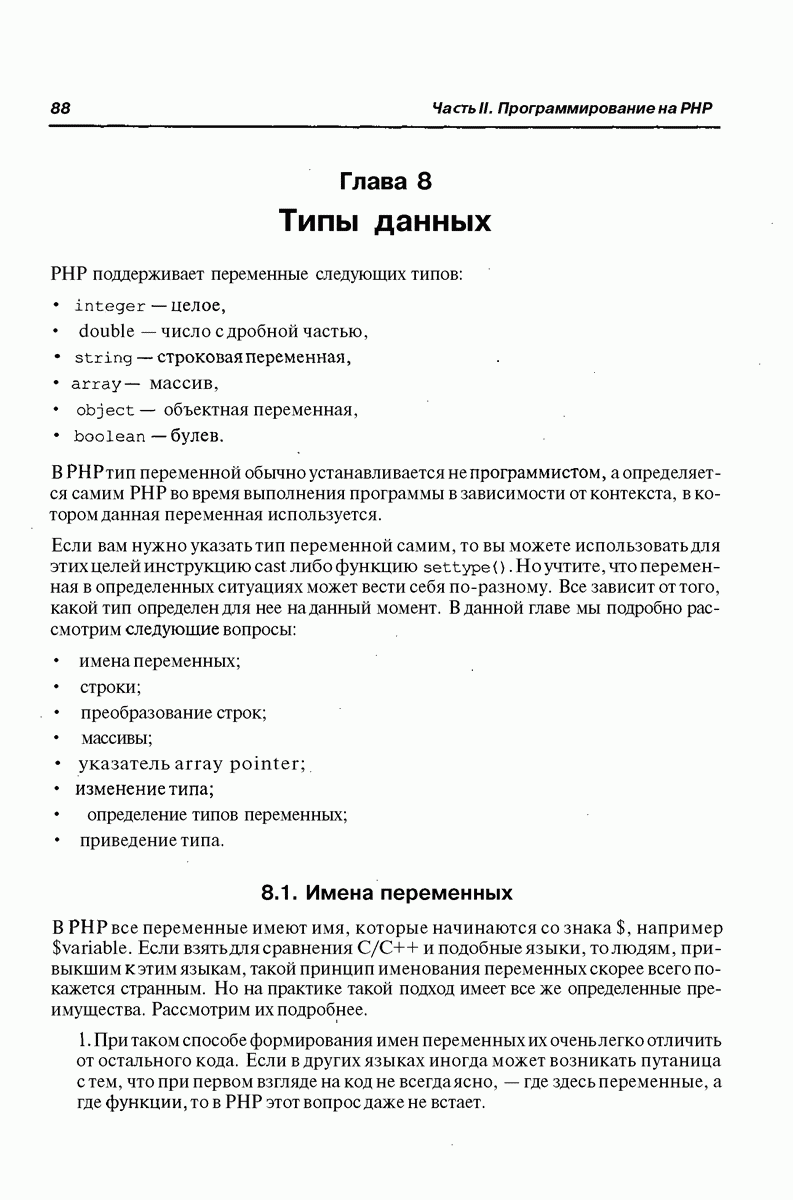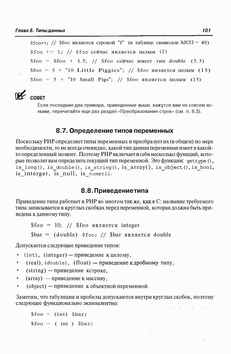 В PHP тип переменной обычно устанавливается не программистом, а определяется РНР во время выполнения программы в зависимости от контекста, в котором данная переменная используется.
