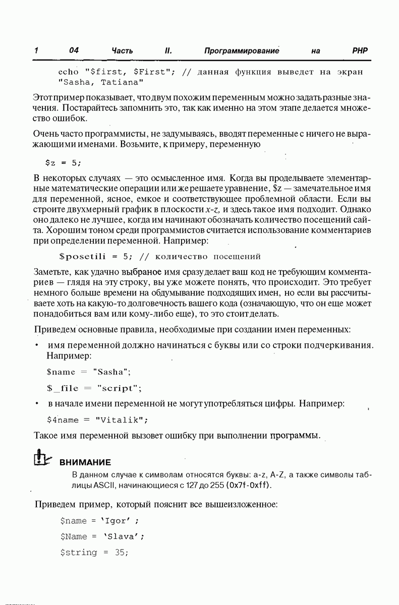 В PHP все переменные имеют имя. Имена переменных в РНР начинаются со знака $, например $variable.