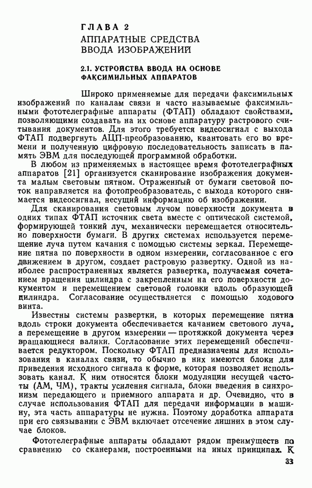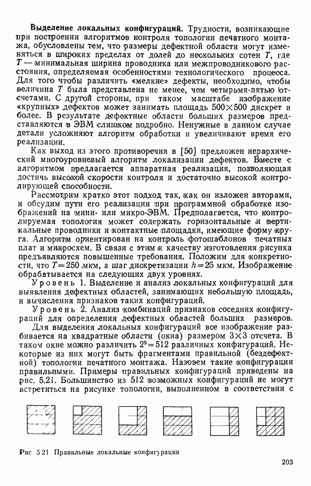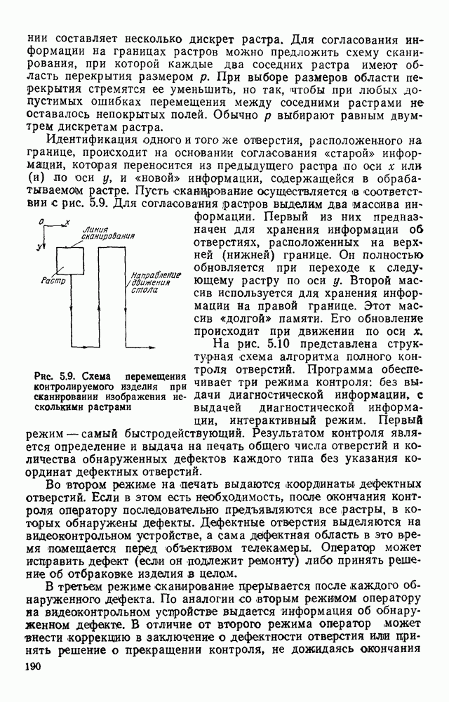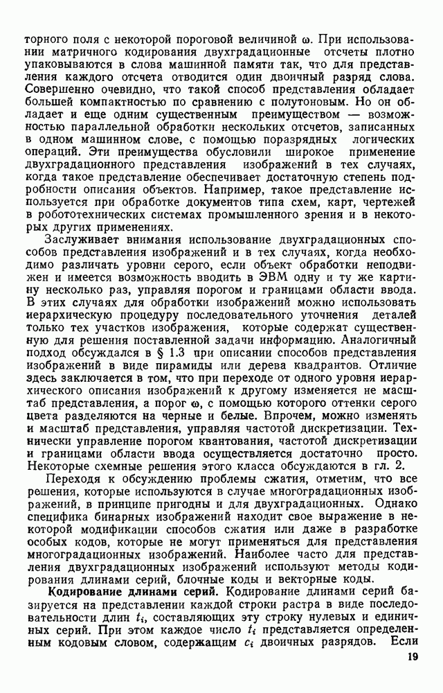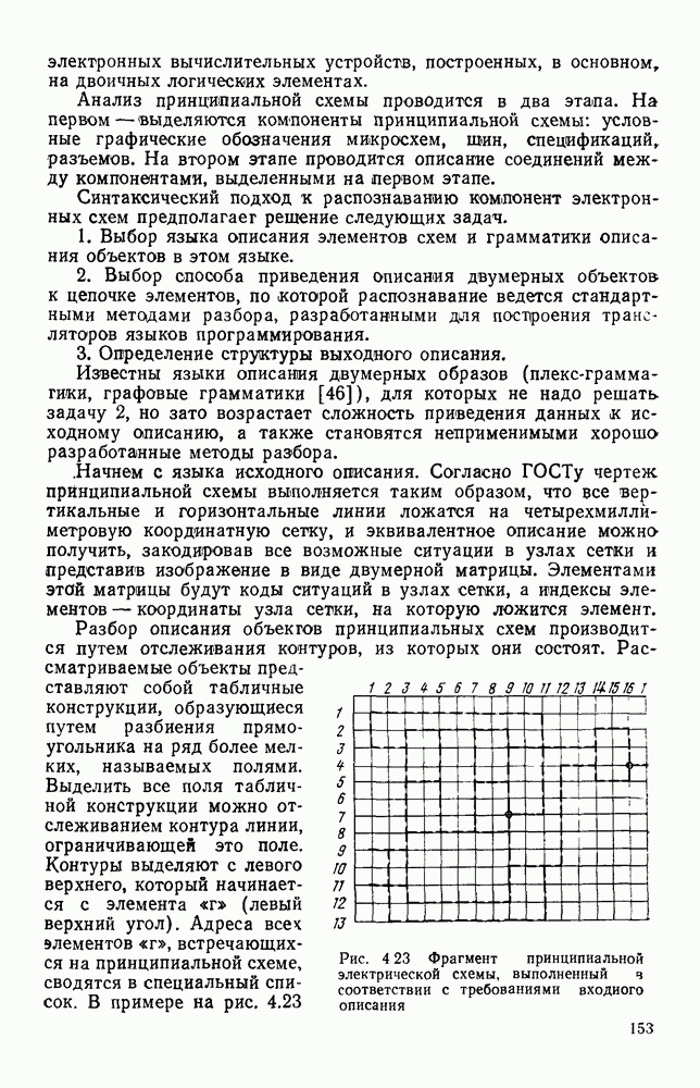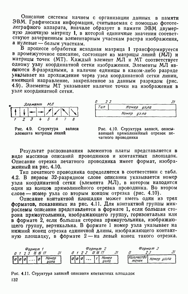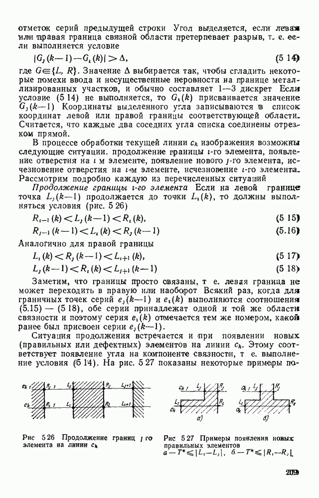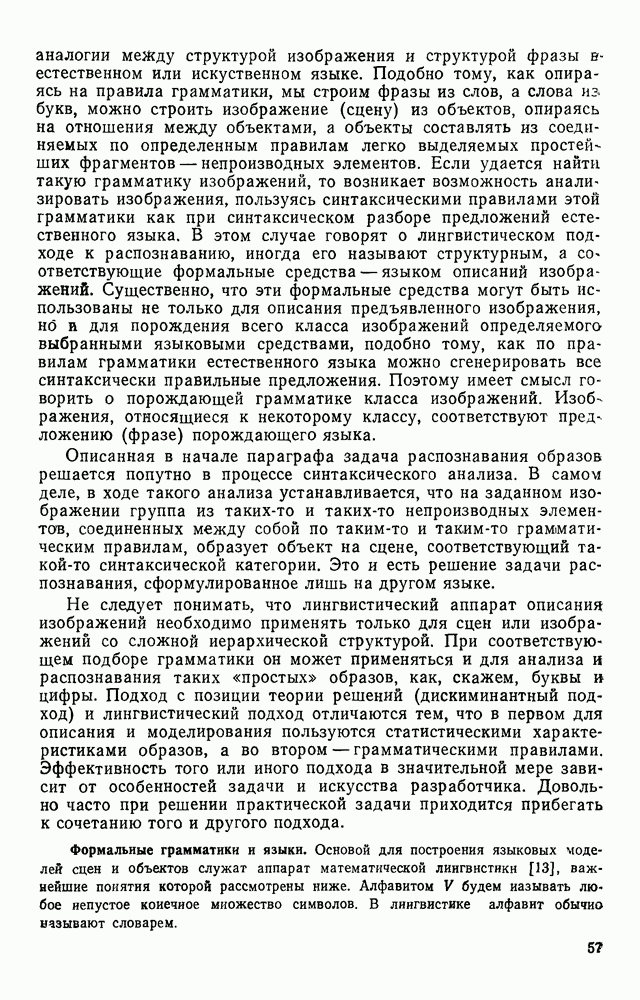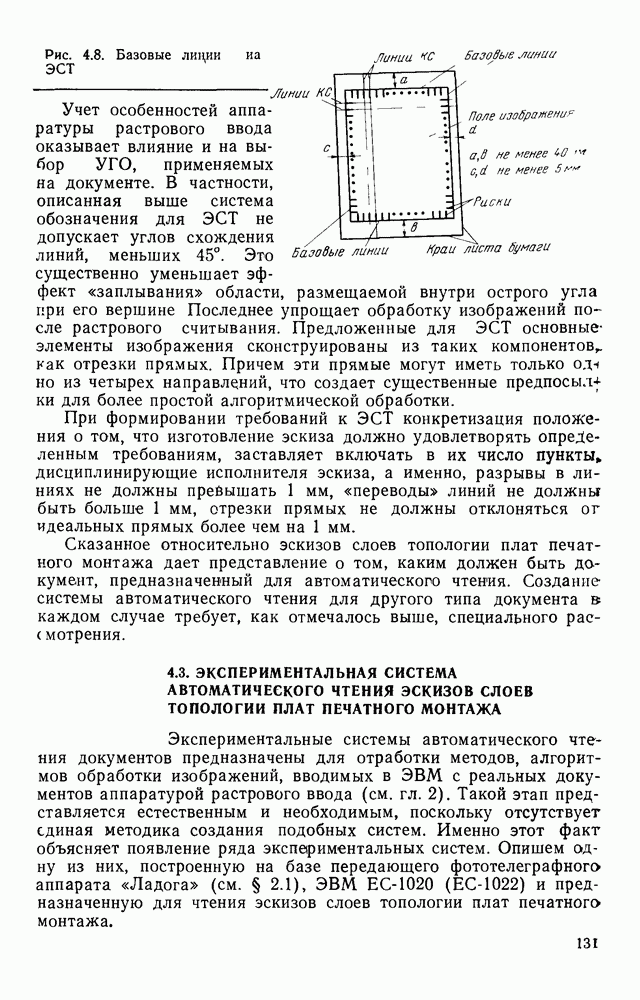 3.9. ЭКСПЕРИМЕНТАЛЬНАЯ ПРОВЕРКА РАБОТЫ СИСТЕМЫДля определения эффективности разработанного метода распознавания, достоверности и скорости распознавания разработана система программ, полностью моделирующая его работу. Процесс моделирования начинается с блока предварительной обработки, затем моделируется дискриминатор и координатор. В памяти ЭВМ (в координаторе) под действием сигналов с дискриминатора фиксируется последовательность переходов из одного состояния в другое. После очередного просмотра генерируется специальный сигнал, по которому либо выдается выходной символ, либо совершается переход на следующий просмотр. Один из этих просмотров обязательно заканчивается выдачей распознанного символа или отказом от распознавания, если в результате шумов и искажений описания различных символов совпадают или встречается неизвестный автомату символ. В последнем случае автомат либо выдает те символы, выбор между которыми он не может сделать, либо просто отказывается распознать данный символ. Вместе с выдачей, из-за отсутствия соответствующего описания в обучающей выборке выходных символов автомата система выдает трассу — последовательность входных сигналов и состояний координатора при распознавании данного символа, а также изображение символа (рис. 3.15). Возможны два режима работы системы. В первом — трасса и распознаваемый символ всегда выдаются на дисплей или АЦПУ, во втором — только в том случае, когда символ распознается неверно или один из элементов таблицы переходов или выходов не определен, что соответствует полному отказу от распознавания. Одна из ситуаций, в которой не определен элемент таблицы переходов, представлена на рис. 3.16. Разделенная точкой с запятой пара цифр обозначает соответственно входной символ и состояние, в которое переходит автомат под его воздействием; символом Д обозначен входной сигнал «длинное пересечение», а символом 8 — сигнал окончания просмотра. Ситуации, представленные на рис. 3.17 и 3.18, соответствуют случаям, когда не определены элементы таблиц переходов — выходов. (см. скан) Рис. 3.15. Пример работы системы: а — трасса; б — распознаваемое изображение (см. скан) Рис. 3.16 Отказ от распознавания: а — трасса; б — распознаваемое изображение (см. скан) Рис. 3.17. Отказ от распознавания: а — трасса; б — распознаваемое изображение (см. скан) Рис. 3.18. Отказ от распознавания: а - трасса; б — распознаваемое изображение (см. скан) Рис. 3.19. Распознавание букв 3 и Э, не различимых при вертикальном просмотре: а — трасса; б — символ (см. скан) Рис. 3.20. Распознавание букв Р и Ч, не различимых при вертикальном просмотре. а — трасса; б — символ (см. скан) Рис. 3.21. Пример распознавания существенно искаженного символа (см. скан) Рис. 3.22. Процесс распознавании буквы Н при отсутствии пробела а — трасса; б — символ (см. скан) Рис. 3.23. Процесс распознавания буквы Ч при отсутствии пробела; а — трасса; б — симрол (см. скан) Рис. 3.24. Распознавание значительно искаженного символа. а — трасса, б — символ Результаты вертикального просмотра (рис. 3.19 и 3 20) иллюстрируют ход процесса моделирования. Из них следует, что буквы З, Э и Р, Ч при вертикальном просмотре не различимы На рис. 3.21-3.24 приведены примеры, показывающие, что программа распознает символы, значительно отличающиеся от эталонных. Для более глубокого изучения возможностей мет