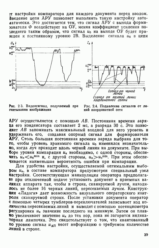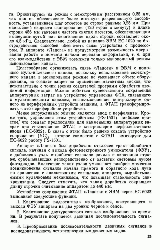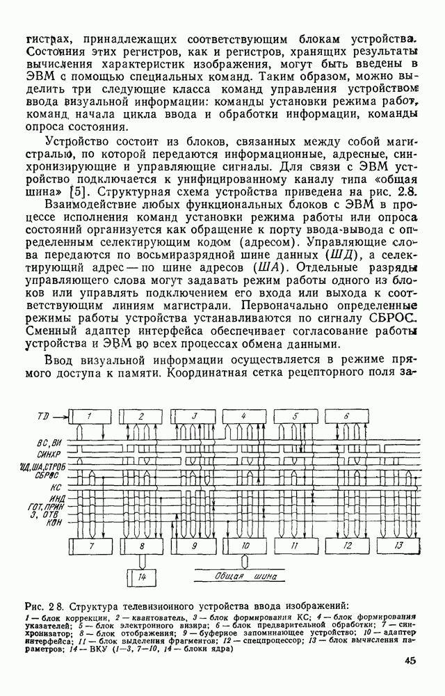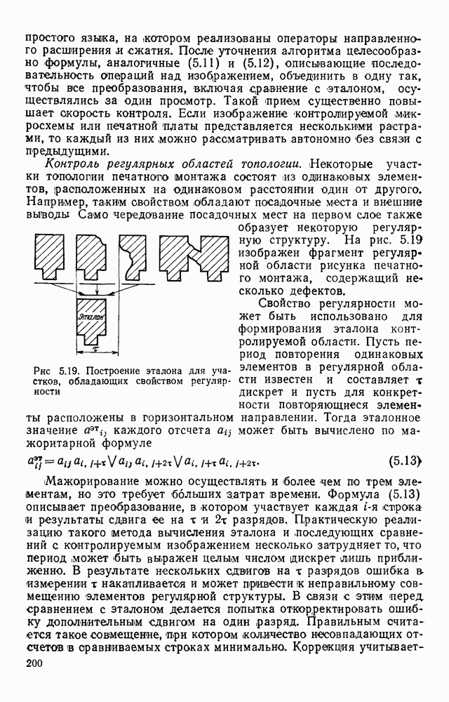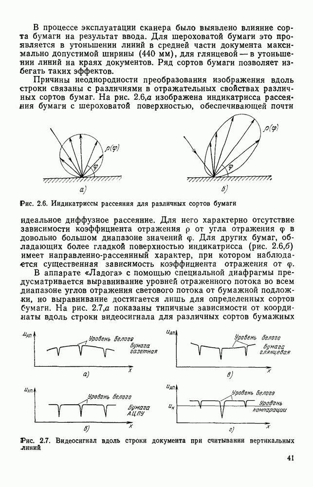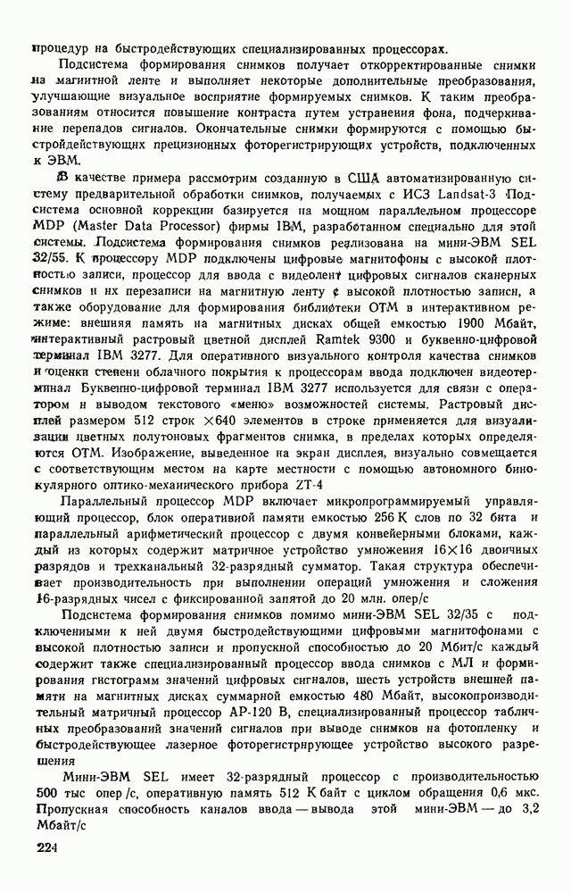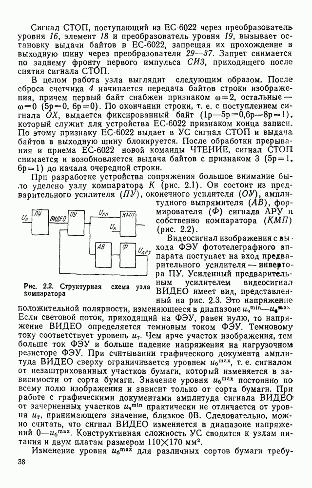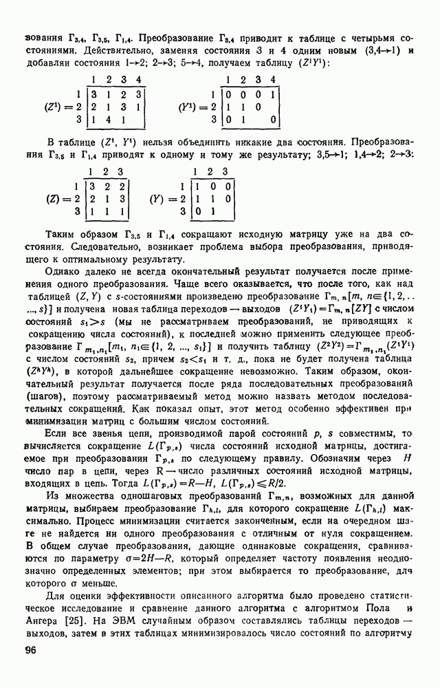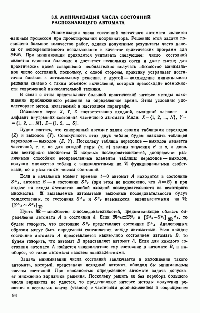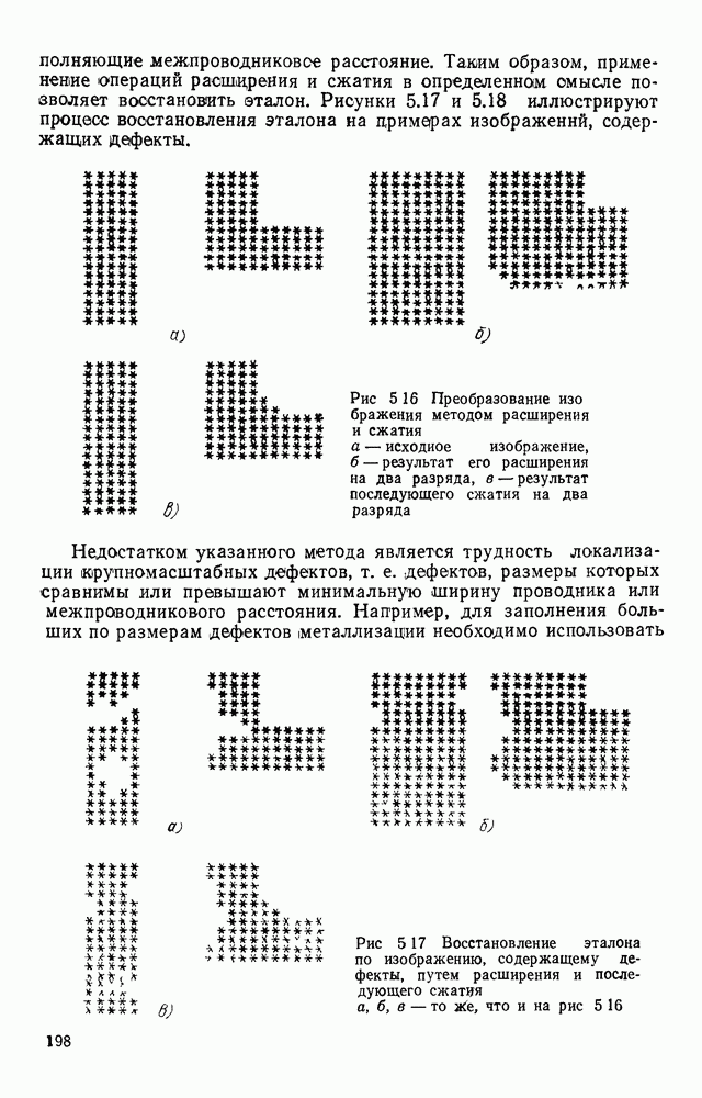 3.9. ЭКСПЕРИМЕНТАЛЬНАЯ ПРОВЕРКА РАБОТЫ СИСТЕМЫДля определения эффективности разработанного метода распознавания, достоверности и скорости распознавания разработана система программ, полностью моделирующая его работу. Процесс моделирования начинается с блока предварительной обработки, затем моделируется дискриминатор и координатор. В памяти ЭВМ (в координаторе) под действием сигналов с дискриминатора фиксируется последовательность переходов из одного состояния в другое. После очередного просмотра генерируется специальный сигнал, по которому либо выдается выходной символ, либо совершается переход на следующий просмотр. Один из этих просмотров обязательно заканчивается выдачей распознанного символа или отказом от распознавания, если в результате шумов и искажений описания различных символов совпадают или встречается неизвестный автомату символ. В последнем случае автомат либо выдает те символы, выбор между которыми он не может сделать, либо просто отказывается распознать данный символ. Вместе с выдачей, из-за отсутствия соответствующего описания в обучающей выборке выходных символов автомата система выдает трассу — последовательность входных сигналов и состояний координатора при распознавании данного символа, а также изображение символа (рис. 3.15). Возможны два режима работы системы. В первом — трасса и распознаваемый символ всегда выдаются на дисплей или АЦПУ, во втором — только в том случае, когда символ распознается неверно или один из элементов таблицы переходов или выходов не определен, что соответствует полному отказу от распознавания. Одна из ситуаций, в которой не определен элемент таблицы переходов, представлена на рис. 3.16. Разделенная точкой с запятой пара цифр обозначает соответственно входной символ и состояние, в которое переходит автомат под его воздействием; символом Д обозначен входной сигнал «длинное пересечение», а символом 8 — сигнал окончания просмотра. Ситуации, представленные на рис. 3.17 и 3.18, соответствуют случаям, когда не определены элементы таблиц переходов — выходов. (см. скан) Рис. 3.15. Пример работы системы: а — трасса; б — распознаваемое изображение (см. скан) Рис. 3.16 Отказ от распознавания: а — трасса; б — распознаваемое изображение (см. скан) Рис. 3.17. Отказ от распознавания: а — трасса; б — распознаваемое изображение (см. скан) Рис. 3.18. Отказ от распознавания: а - трасса; б — распознаваемое изображение (см. скан) Рис. 3.19. Распознавание букв 3 и Э, не различимых при вертикальном просмотре: а — трасса; б — символ (см. скан) Рис. 3.20. Распознавание букв Р и Ч, не различимых при вертикальном просмотре. а — трасса; б — символ (см. скан) Рис. 3.21. Пример распознавания существенно искаженного символа (см. скан) Рис. 3.22. Процесс распознавании буквы Н при отсутствии пробела а — трасса; б — символ (см. скан) Рис. 3.23. Процесс распознавания буквы Ч при отсутствии пробела; а — трасса; б — симрол (см. скан) Рис. 3.24. Распознавание значительно искаженного символа. а — трасса, б — символ Результаты вертикального просмотра (рис. 3.19 и 3 20) иллюстрируют ход процесса моделирования. Из них следует, что буквы З, Э и Р, Ч при вертикальном просмотре не различимы На рис. 3.21-3.24 приведены примеры, показывающие, что программа распознает символы, значительно отличающиеся от эталонных. Для более глубокого изучения возможностей мет