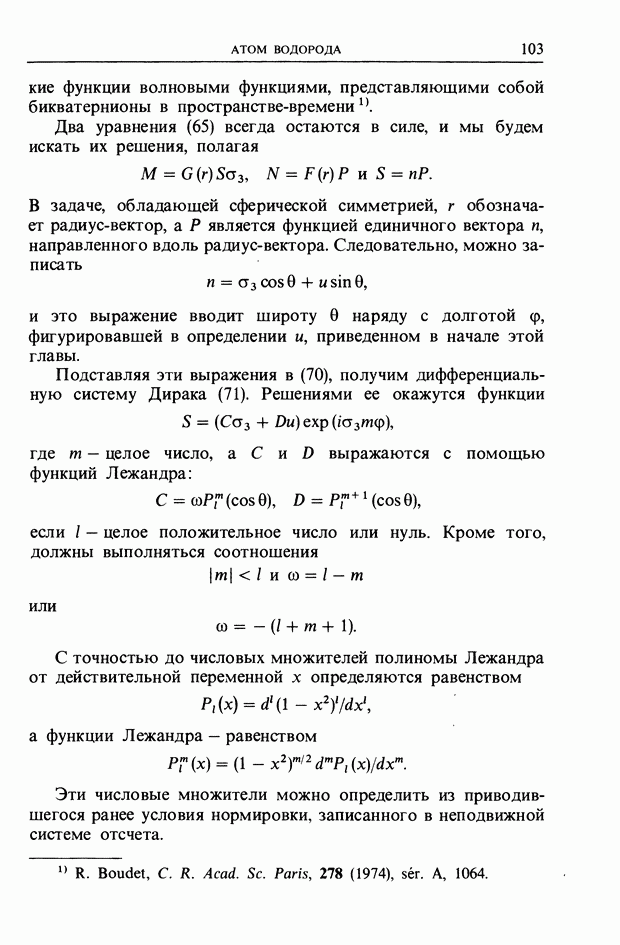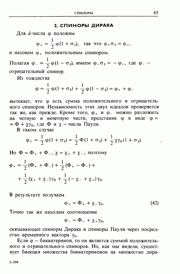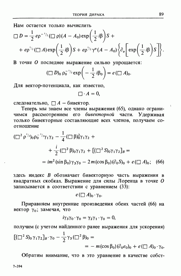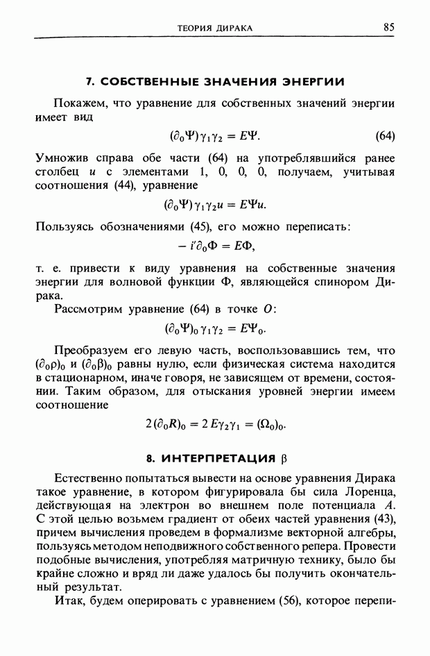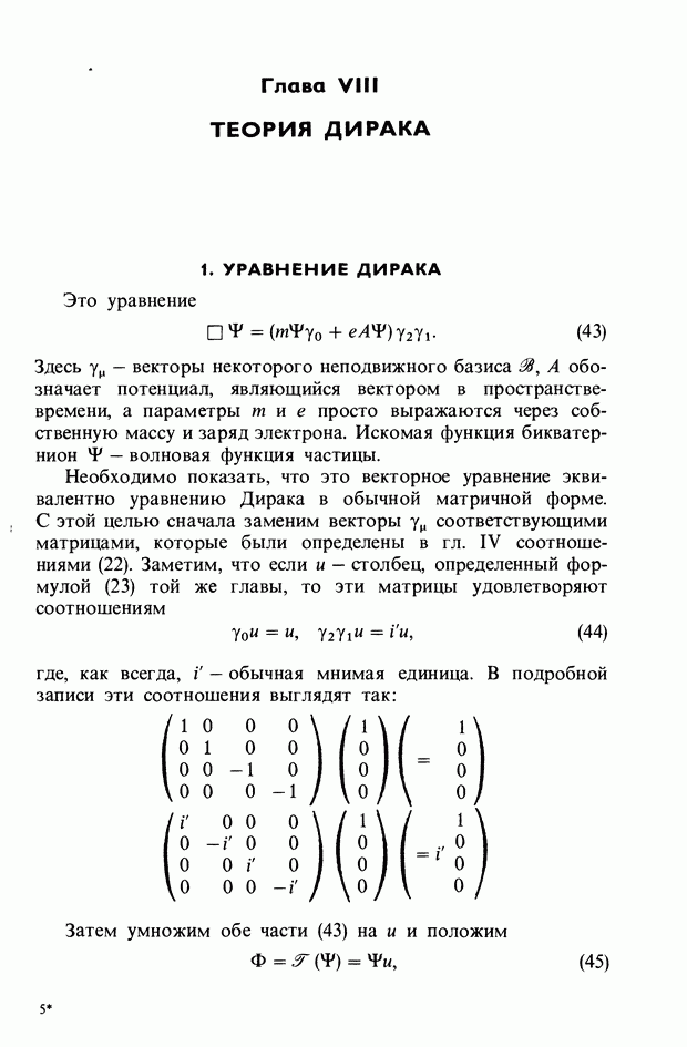 считая L бикватернионом, зависящим только от пространственных координат. Тогда в соответствии с уравнением (63) Е оказывается собственным значением энергии в стационарном состоянии. Уравнение Дирака (43) записывается в виде