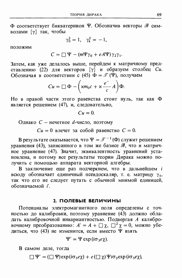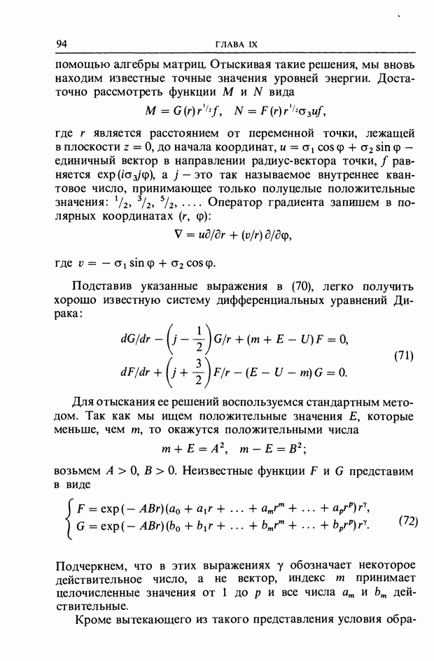 где Подставив указанные выражения в (70), легко получить хорошо известную систему дифференциальных уравнений Дирака: