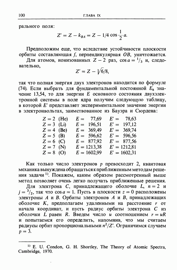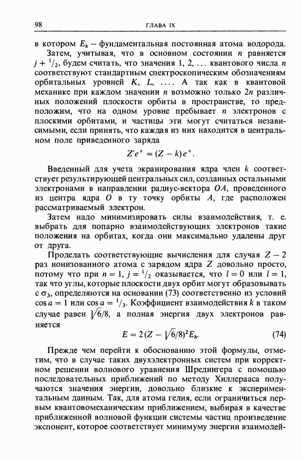 где R — постоянная Ридберга для неподвижного ядра. Мы предполагали, что центральный заряд неподвижен, тогда как на самом деле неподвижен центр тяжести системы ядро — отрицательный электрон, т. е. ядро вовлекается в движение; для учета этого эффекта при приближенных вычислениях надо в выражении для Е правую часть умножить на Приняв фундаментальную постоянную Сюрдена, так что абсолютная погрешность не превосходит 0,02 эВ. Однако если взять для