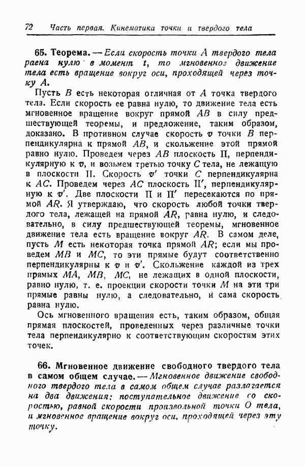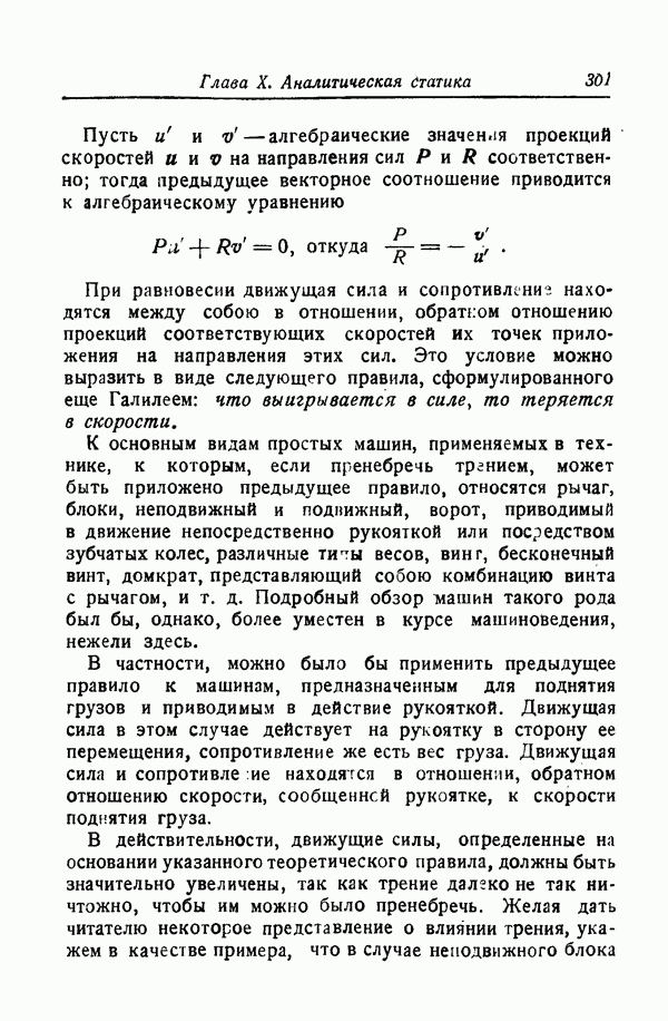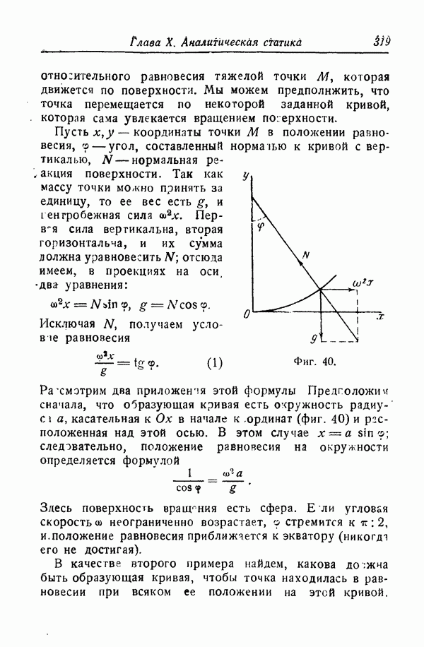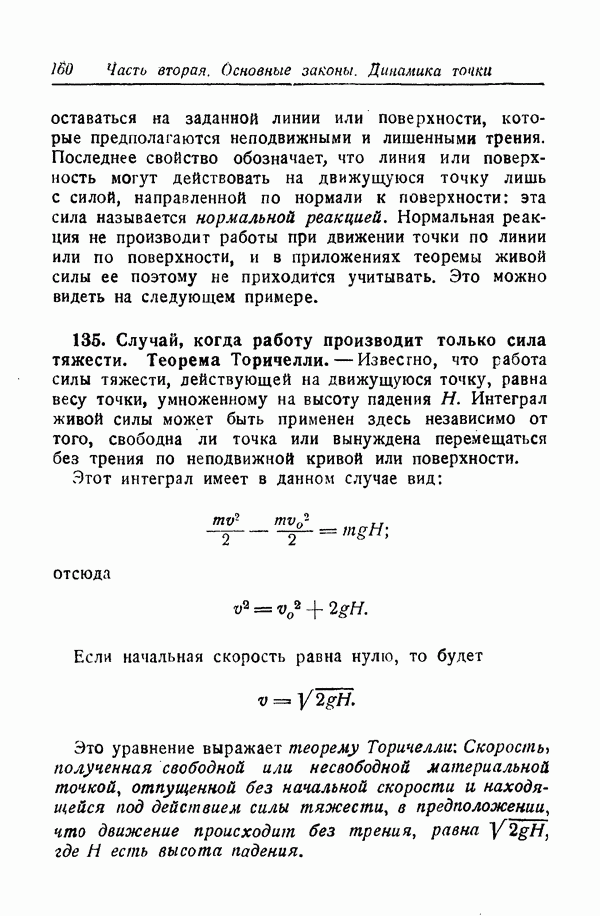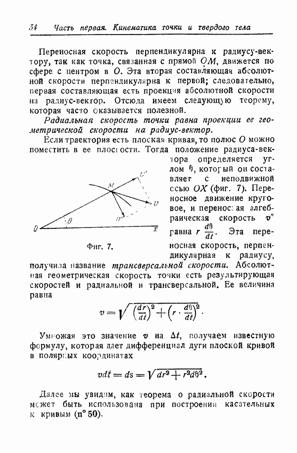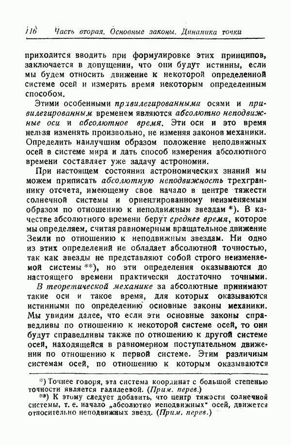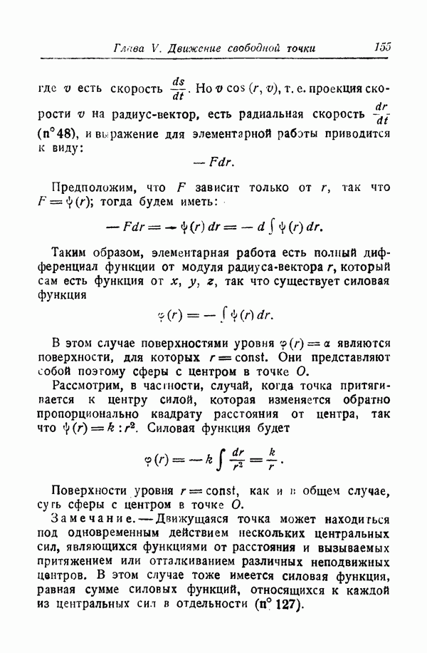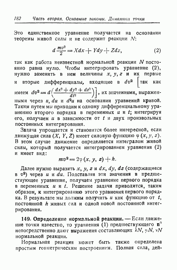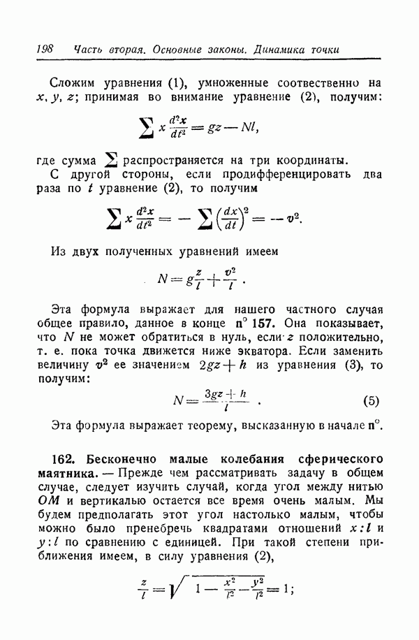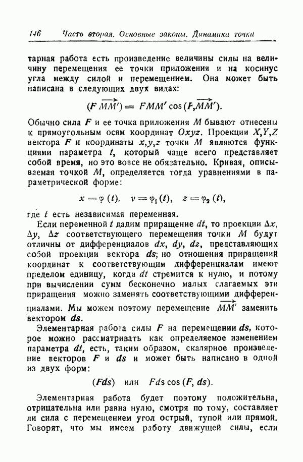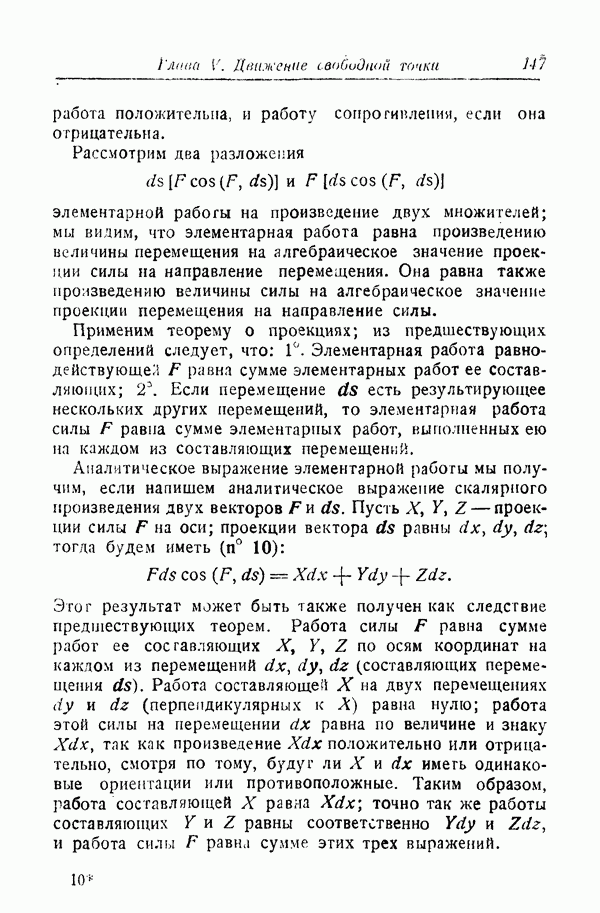 Эти составляющие обращаются в нуль одновременно с относительной скоростью 170. Сила инерции переносного движения при равномерном вращении системы отсчета.Если переносное движение есть равномерное вращение Кинетическая реакция переносного движения — 171. О применении теоремы живой силы.Теорема живой силы, как и другие теоремы динамики, может быть применена к относительному движению, если только к реальным силам присоединить две фиктивные силы: силу инерции переносного движения и сложную центробежную силу. Но работа сложной центробежной силы в относительном движении равна нулю, так как эта сила параллельна добавочному ускорению и поэтому перпендикулярна к относительной скорости; отсюда приходим к следующему заключению: Теорема живой силы может быть применена к относительному движению точки в подвижной системе осей при, условии, что к работе реальных сил прибавляется работа силы инерции переносного движения. В частности, если переносное движение есть равномерное вращение, сила инерции переносного движения совпадает с центробежной силой, вызванной этим вращением, следовательно, чтобы приложить теорему живой силы к относительному движению точки по отношению к осям, совершающим равномерное вращение, достаточно прибавить к работе реальных сил работу центробежной силы переносного движения. Это замечание часто применяется в прикладной механике, в частности, в теории вентиляторов и турбин.