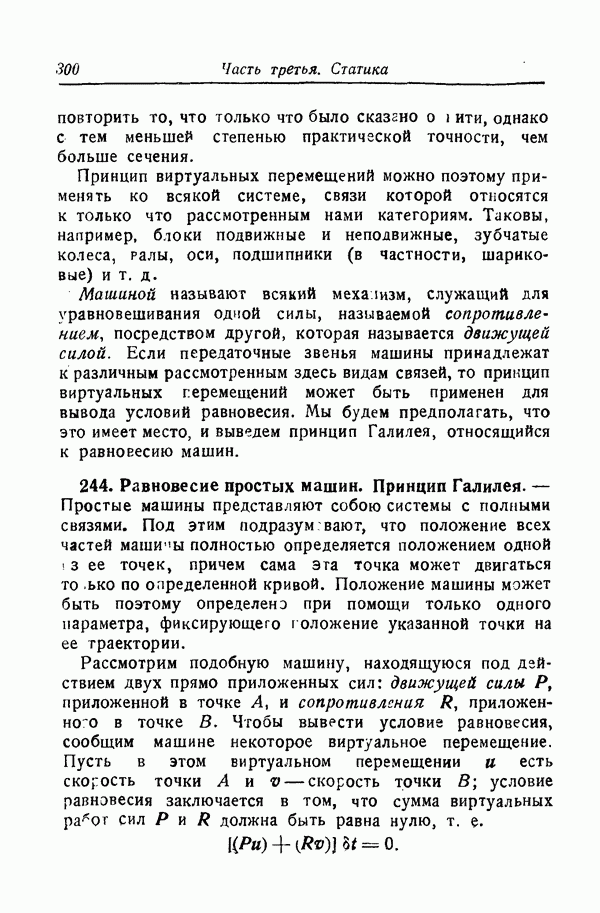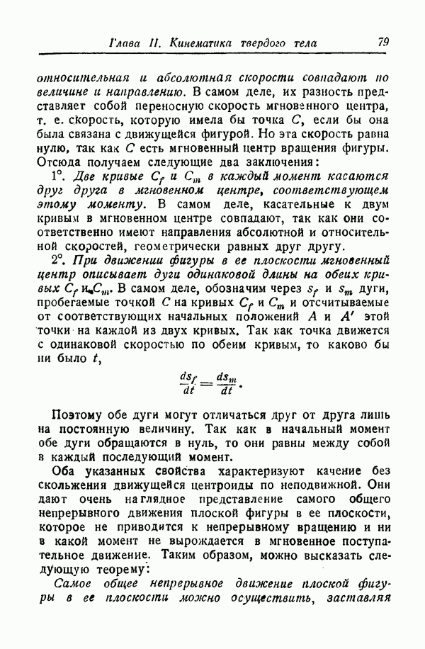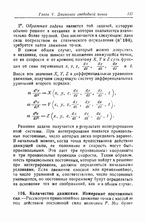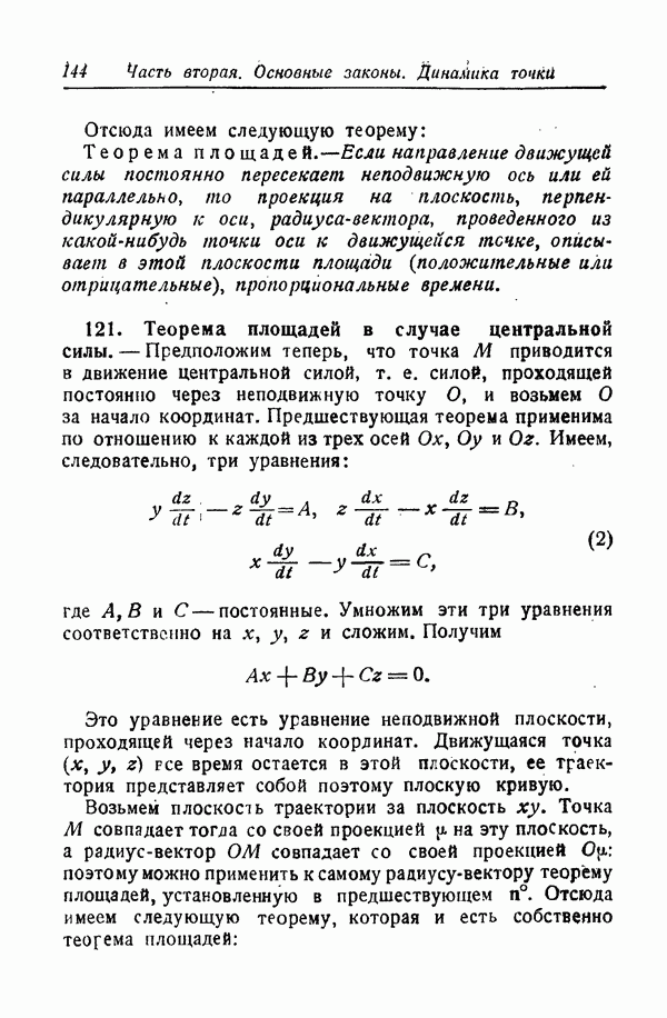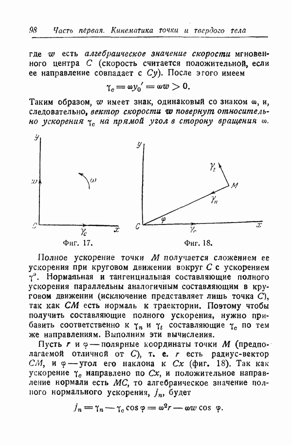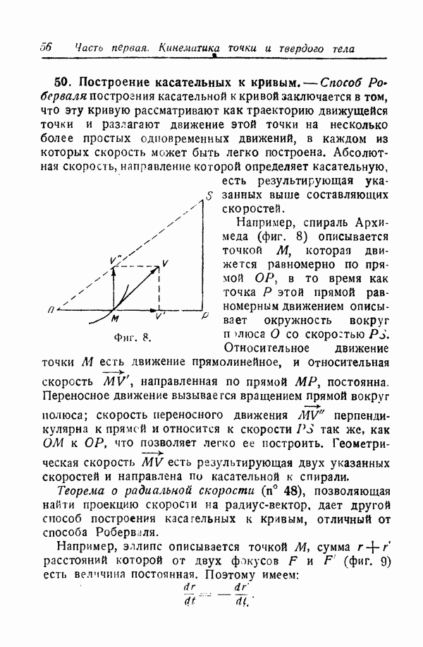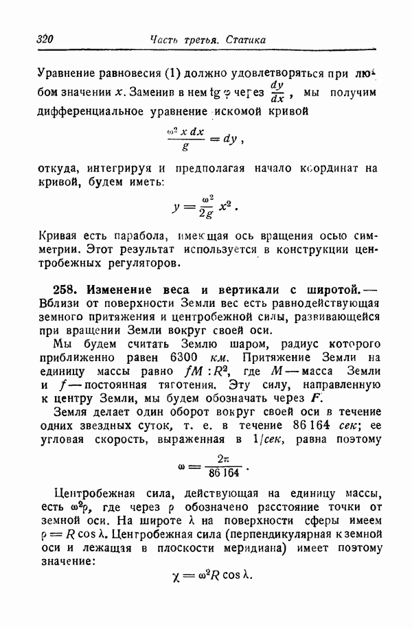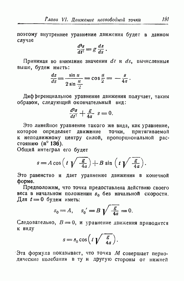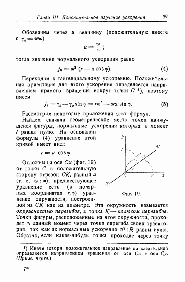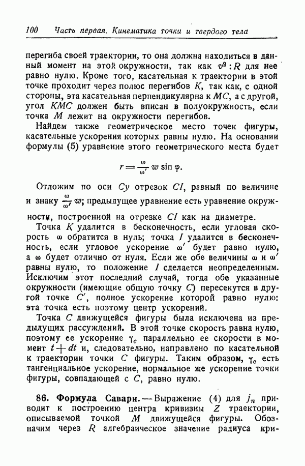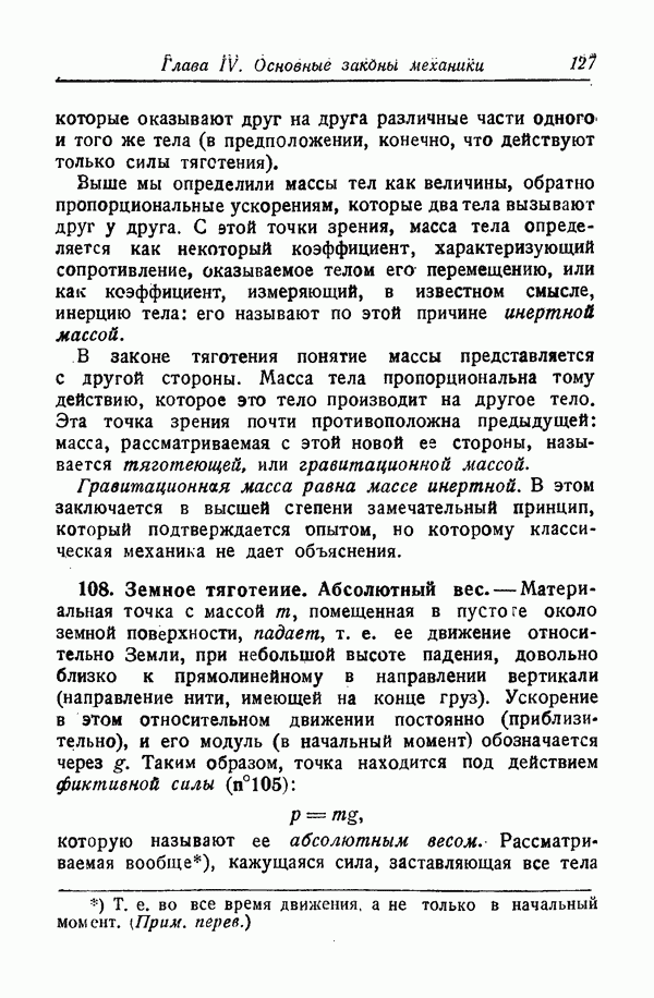 Эти составляющие обращаются в нуль одновременно с относительной скоростью 170. Сила инерции переносного движения при равномерном вращении системы отсчета.Если переносное движение есть равномерное вращение Кинетическая реакция переносного движения — 171. О применении теоремы живой силы.Теорема живой силы, как и другие теоремы динамики, может быть применена к относительному движению, если только к реальным силам присоединить две фиктивные силы: силу инерции переносного движения и сложную центробежную силу. Но работа сложной центробежной силы в относительном движении равна нулю, так как эта сила параллельна добавочному ускорению и поэтому перпендикулярна к относительной скорости; отсюда приходим к следующему заключению: Теорема живой силы может быть применена к относительному движению точки в подвижной системе осей при, условии, что к работе реальных сил прибавляется работа силы инерции переносного движения. В частности, если переносное движение есть равномерное вращение, сила инерции переносного движения совпадает с центробежной силой, вызванной этим вращением, следовательно, чтобы приложить теорему живой силы к относительному движению точки по отношению к осям, совершающим равномерное вращение, достаточно прибавить к работе реальных сил работу центробежной силы переносного движения. Это замечание часто применяется в прикладной механике, в частности, в теории вентиляторов и турбин.