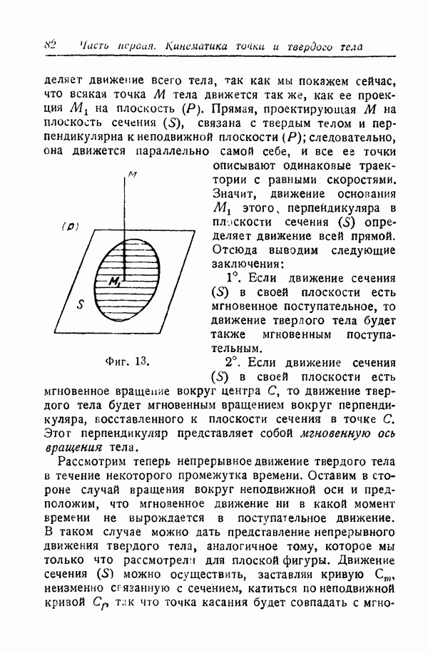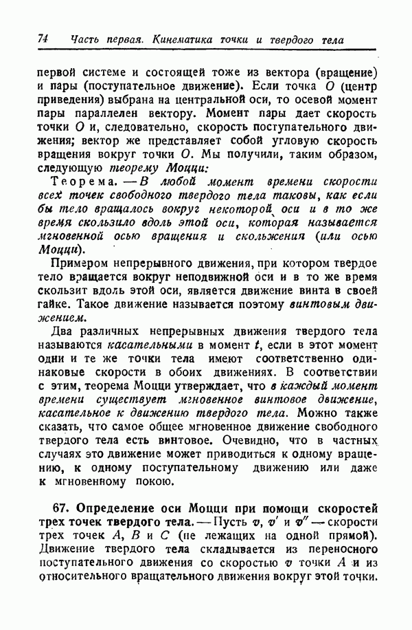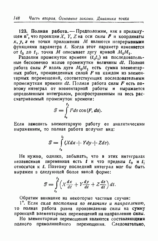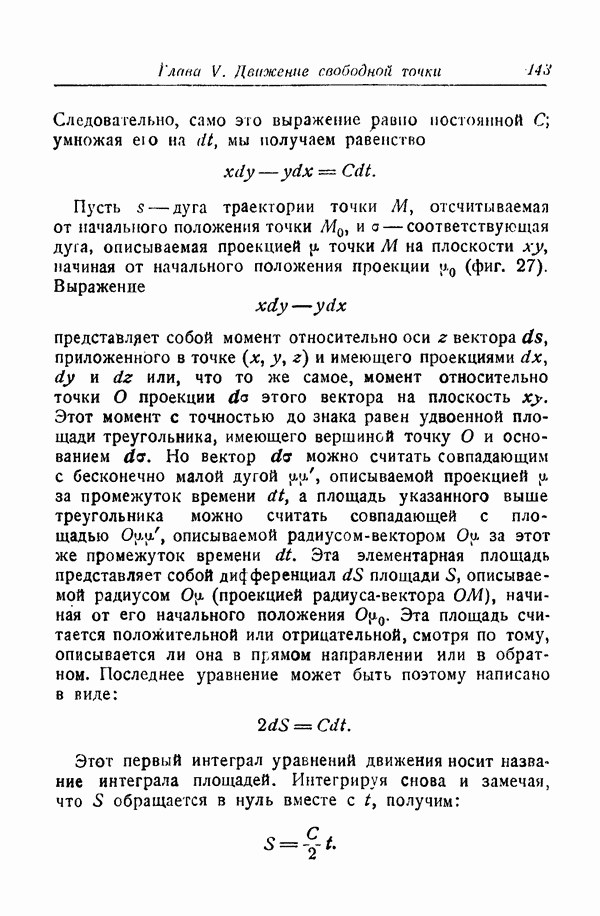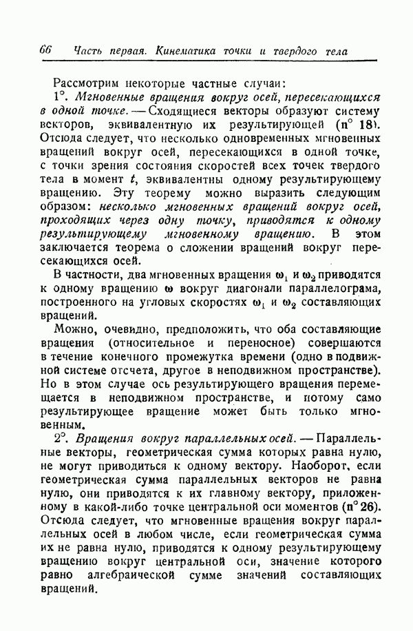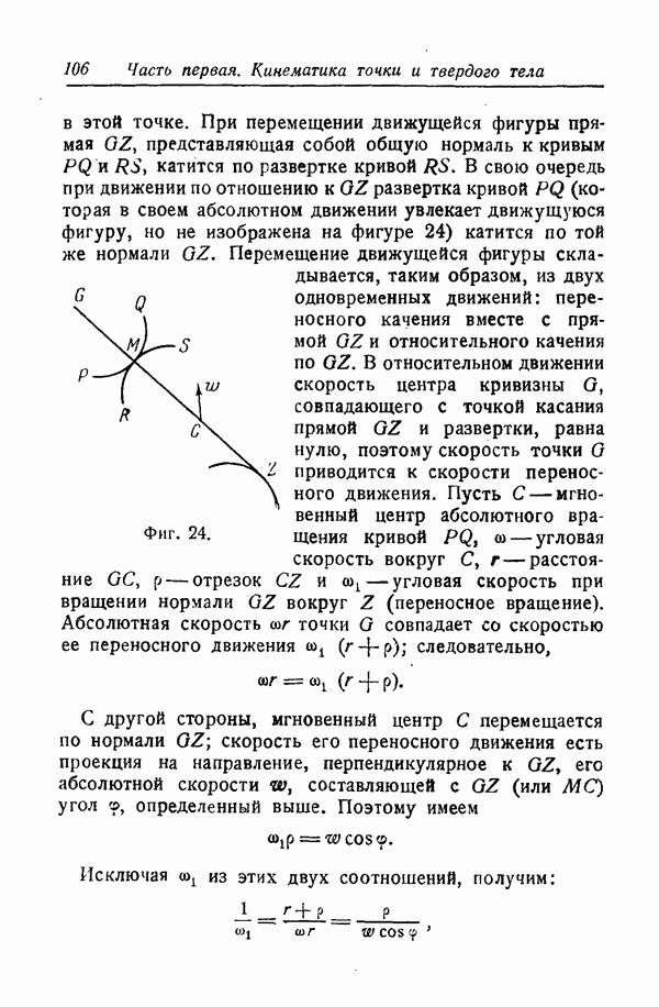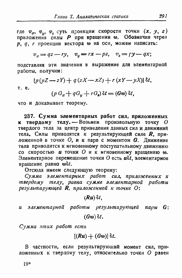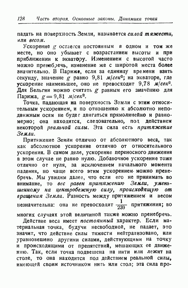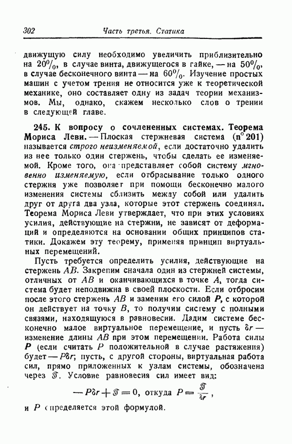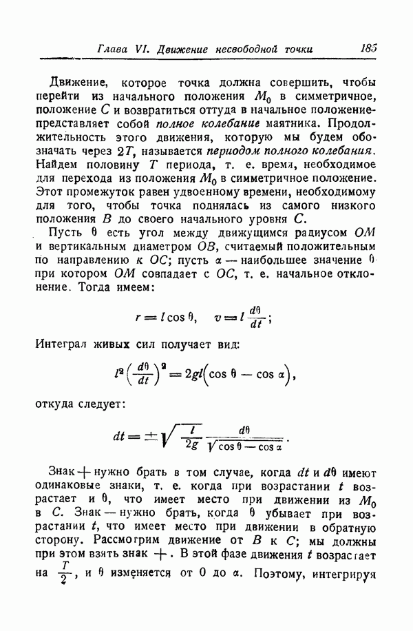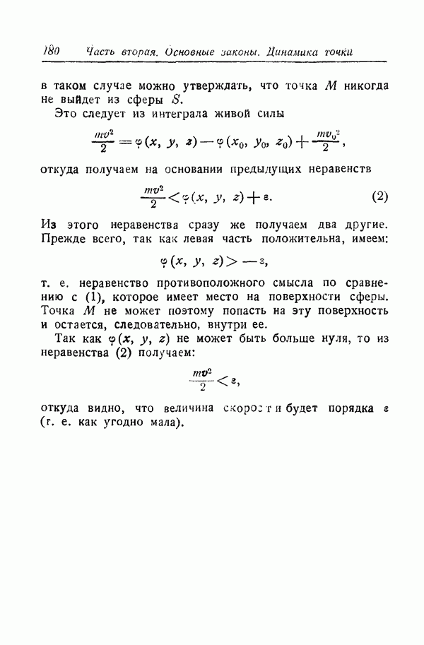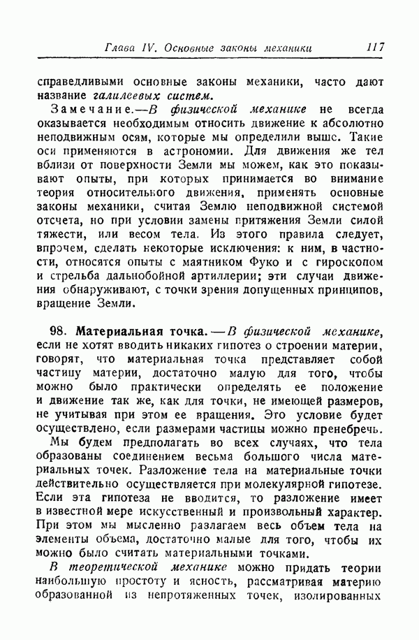 Эти составляющие обращаются в нуль одновременно с относительной скоростью 170. Сила инерции переносного движения при равномерном вращении системы отсчета.Если переносное движение есть равномерное вращение Кинетическая реакция переносного движения — 171. О применении теоремы живой силы.Теорема живой силы, как и другие теоремы динамики, может быть применена к относительному движению, если только к реальным силам присоединить две фиктивные силы: силу инерции переносного движения и сложную центробежную силу. Но работа сложной центробежной силы в относительном движении равна нулю, так как эта сила параллельна добавочному ускорению и поэтому перпендикулярна к относительной скорости; отсюда приходим к следующему заключению: Теорема живой силы может быть применена к относительному движению точки в подвижной системе осей при, условии, что к работе реальных сил прибавляется работа силы инерции переносного движения. В частности, если переносное движение есть равномерное вращение, сила инерции переносного движения совпадает с центробежной силой, вызванной этим вращением, следовательно, чтобы приложить теорему живой силы к относительному движению точки по отношению к осям, совершающим равномерное вращение, достаточно прибавить к работе реальных сил работу центробежной силы переносного движения. Это замечание часто применяется в прикладной механике, в частности, в теории вентиляторов и турбин.