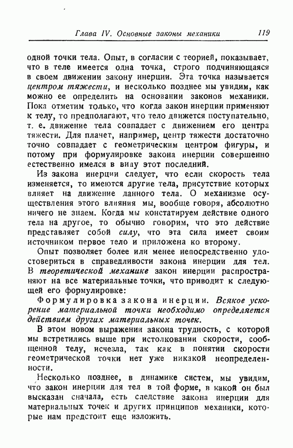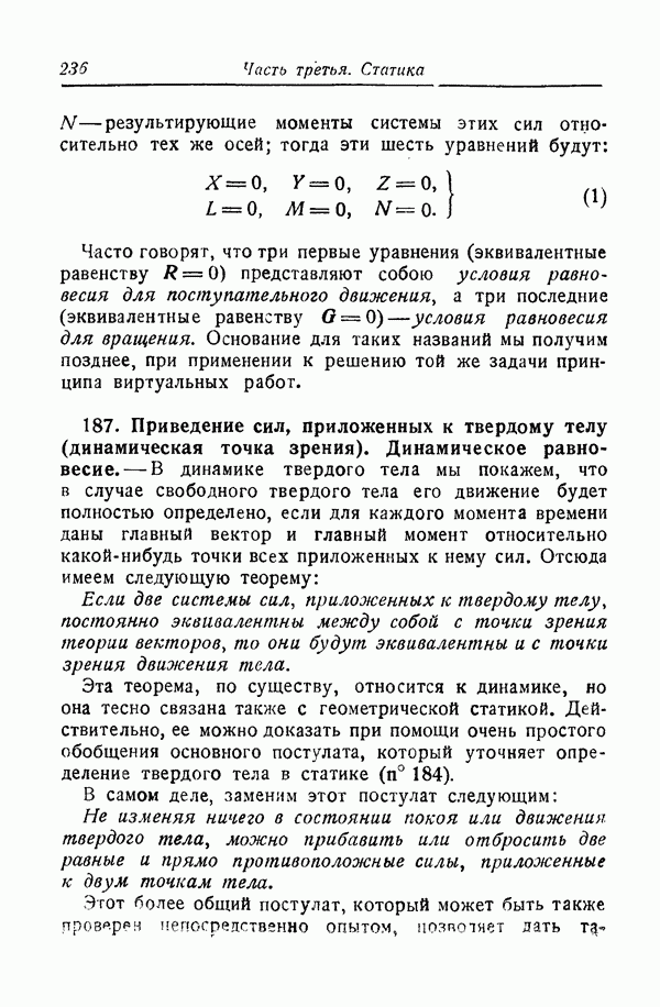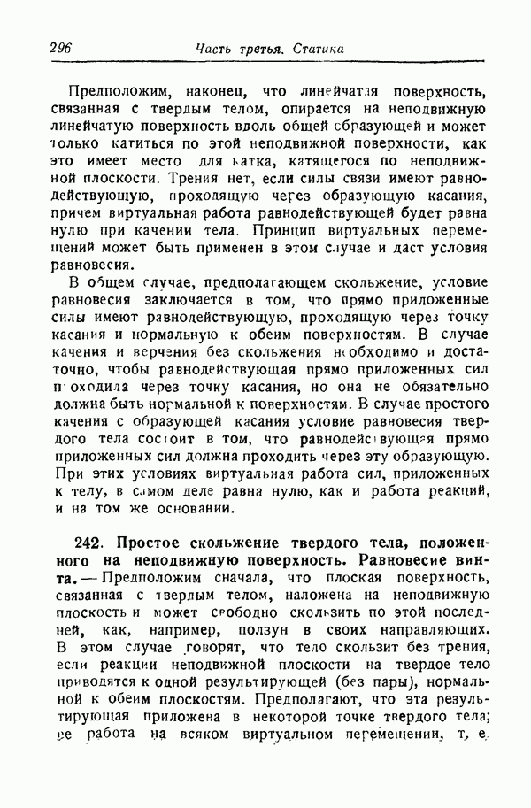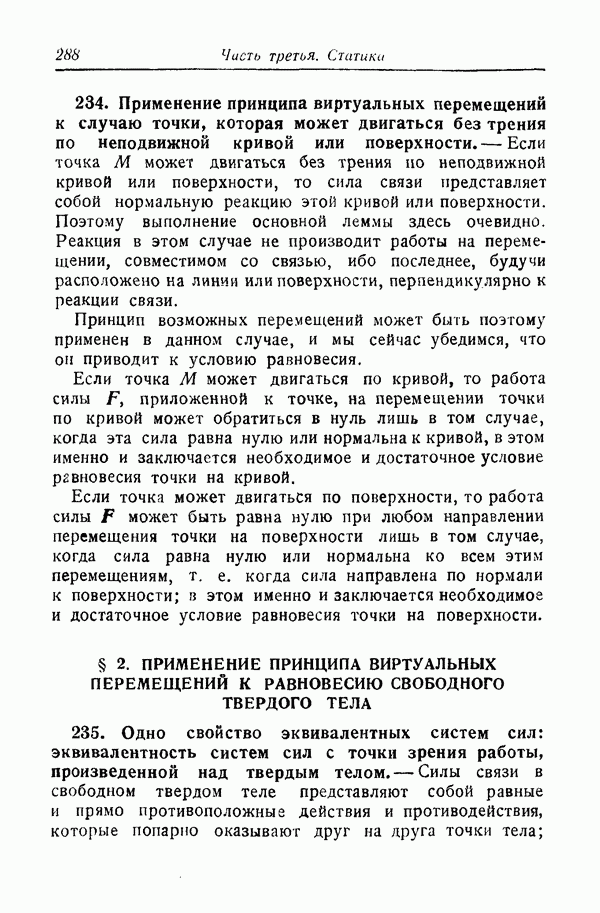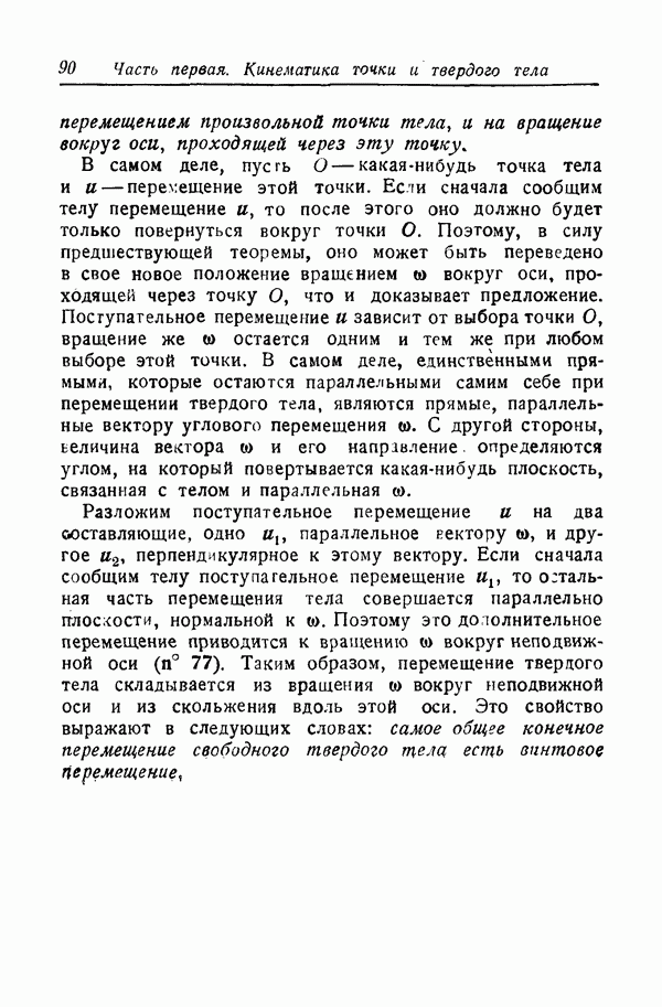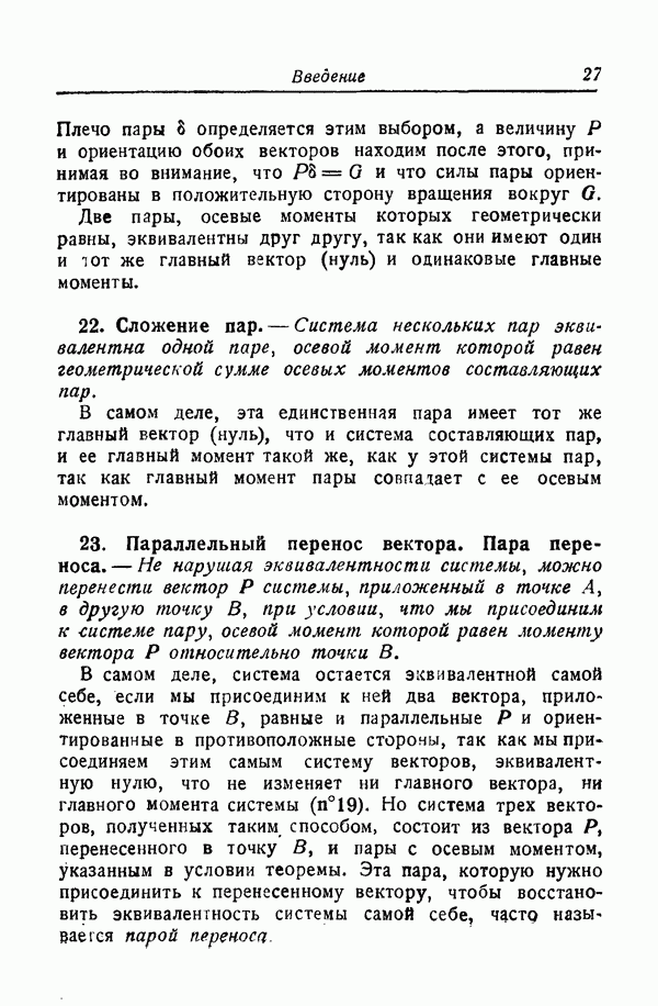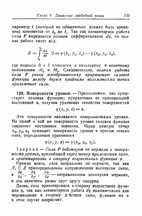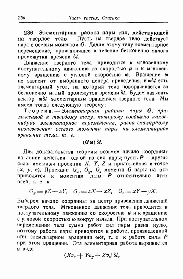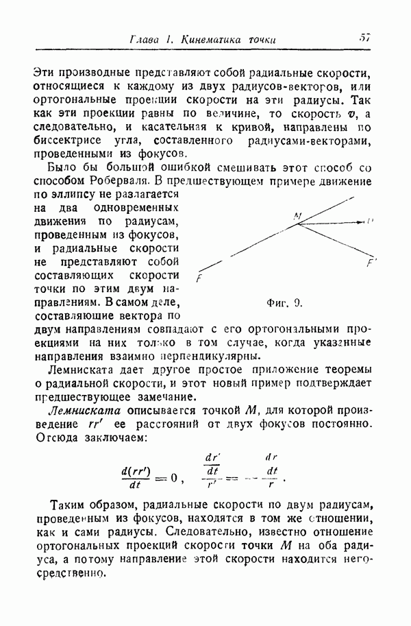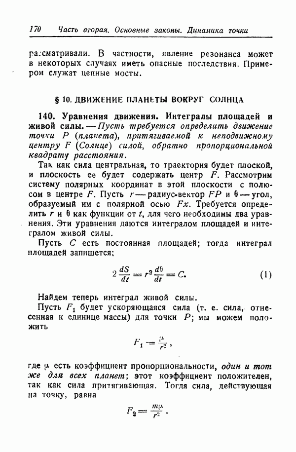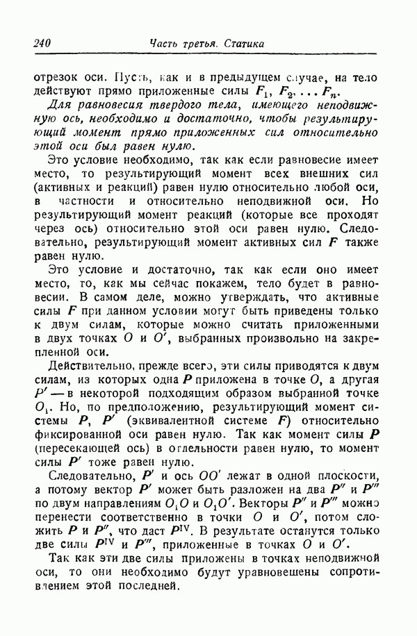 Эти составляющие обращаются в нуль одновременно с относительной скоростью 170. Сила инерции переносного движения при равномерном вращении системы отсчета.Если переносное движение есть равномерное вращение Кинетическая реакция переносного движения — 171. О применении теоремы живой силы.Теорема живой силы, как и другие теоремы динамики, может быть применена к относительному движению, если только к реальным силам присоединить две фиктивные силы: силу инерции переносного движения и сложную центробежную силу. Но работа сложной центробежной силы в относительном движении равна нулю, так как эта сила параллельна добавочному ускорению и поэтому перпендикулярна к относительной скорости; отсюда приходим к следующему заключению: Теорема живой силы может быть применена к относительному движению точки в подвижной системе осей при, условии, что к работе реальных сил прибавляется работа силы инерции переносного движения. В частности, если переносное движение есть равномерное вращение, сила инерции переносного движения совпадает с центробежной силой, вызванной этим вращением, следовательно, чтобы приложить теорему живой силы к относительному движению точки по отношению к осям, совершающим равномерное вращение, достаточно прибавить к работе реальных сил работу центробежной силы переносного движения. Это замечание часто применяется в прикладной механике, в частности, в теории вентиляторов и турбин.