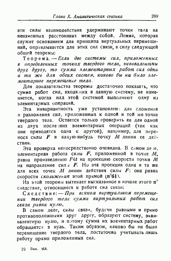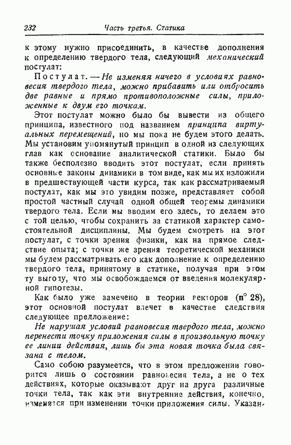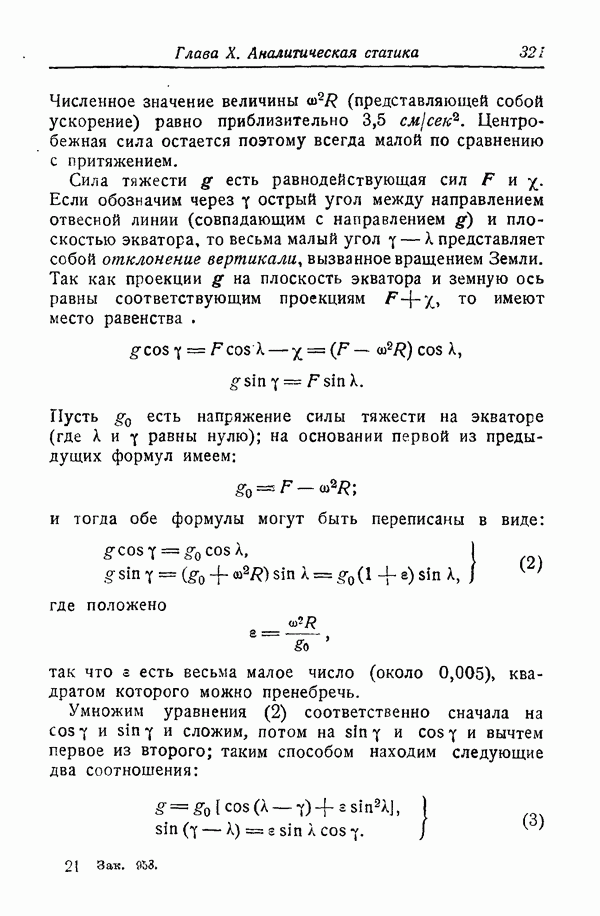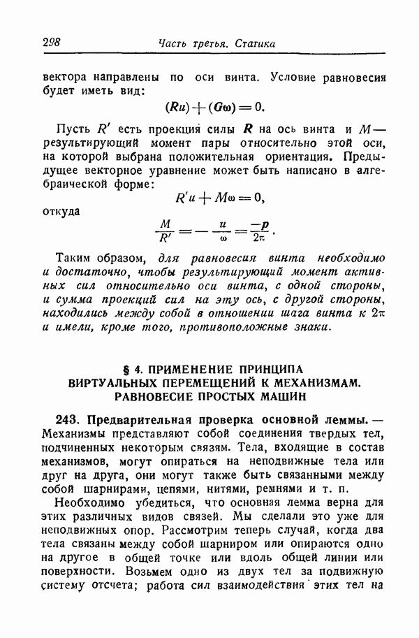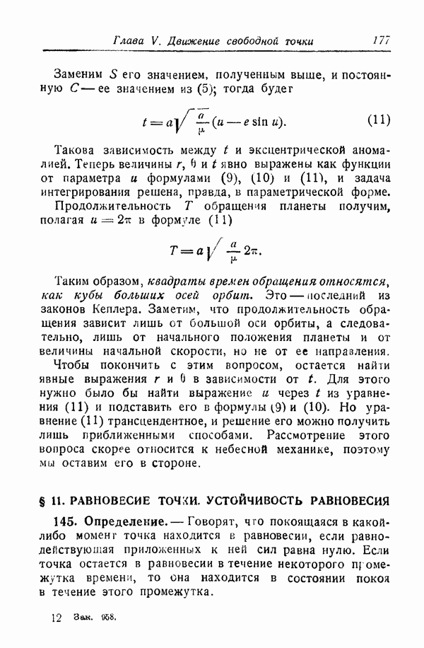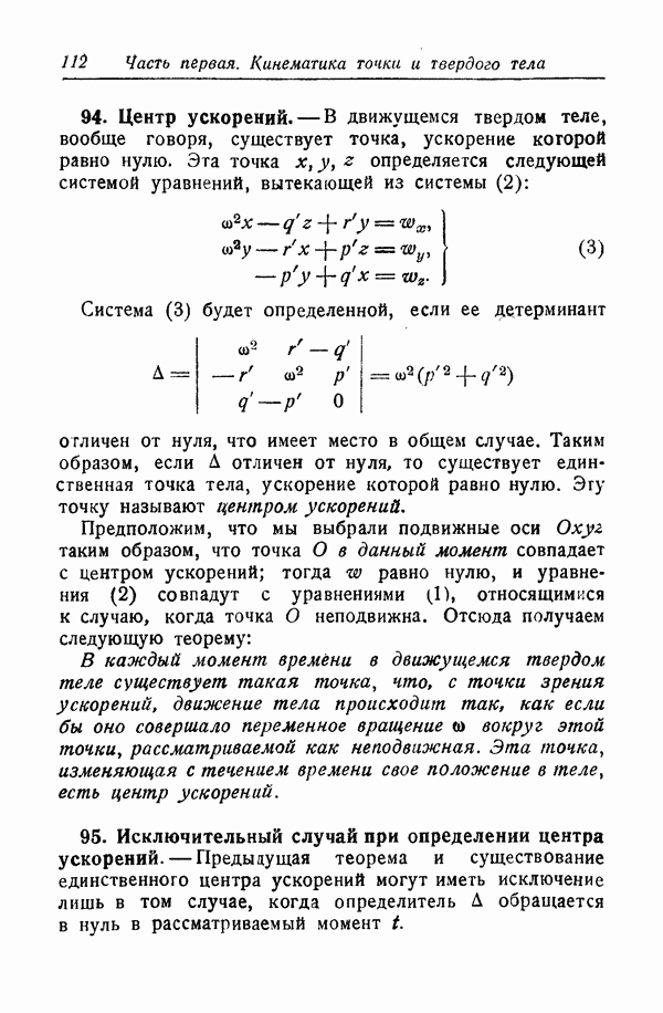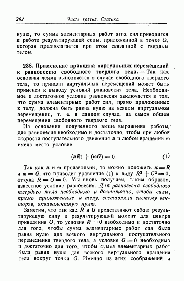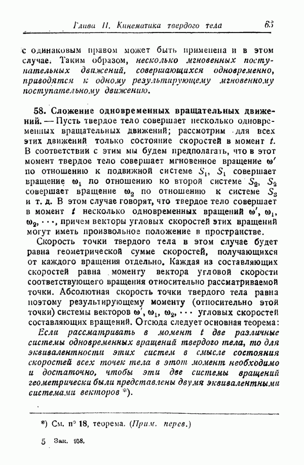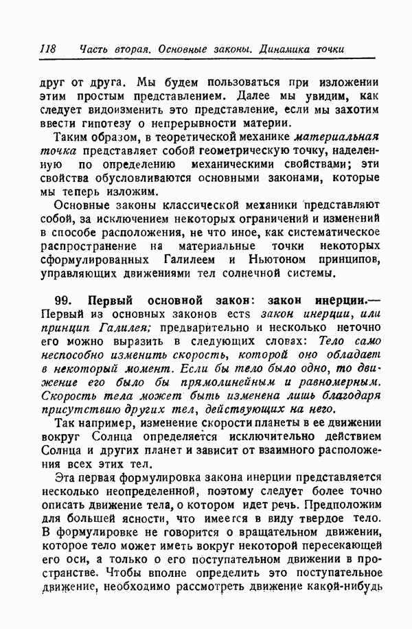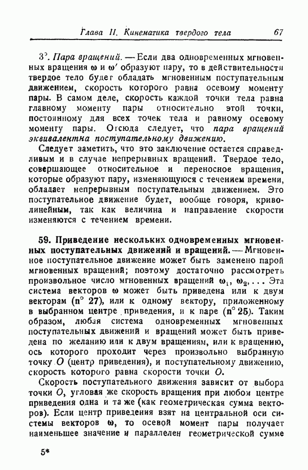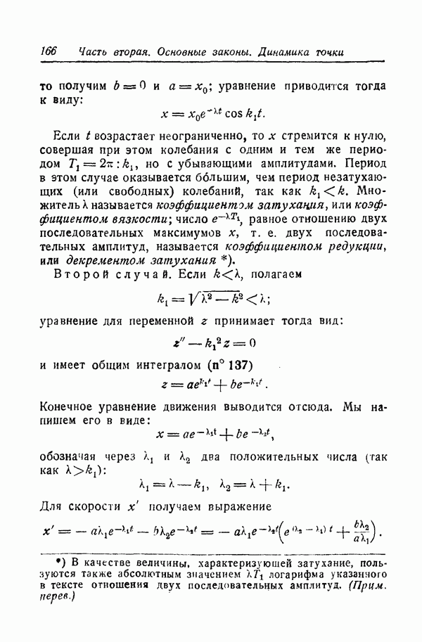 Эти составляющие обращаются в нуль одновременно с относительной скоростью 170. Сила инерции переносного движения при равномерном вращении системы отсчета.Если переносное движение есть равномерное вращение Кинетическая реакция переносного движения — 171. О применении теоремы живой силы.Теорема живой силы, как и другие теоремы динамики, может быть применена к относительному движению, если только к реальным силам присоединить две фиктивные силы: силу инерции переносного движения и сложную центробежную силу. Но работа сложной центробежной силы в относительном движении равна нулю, так как эта сила параллельна добавочному ускорению и поэтому перпендикулярна к относительной скорости; отсюда приходим к следующему заключению: Теорема живой силы может быть применена к относительному движению точки в подвижной системе осей при, условии, что к работе реальных сил прибавляется работа силы инерции переносного движения. В частности, если переносное движение есть равномерное вращение, сила инерции переносного движения совпадает с центробежной силой, вызванной этим вращением, следовательно, чтобы приложить теорему живой силы к относительному движению точки по отношению к осям, совершающим равномерное вращение, достаточно прибавить к работе реальных сил работу центробежной силы переносного движения. Это замечание часто применяется в прикладной механике, в частности, в теории вентиляторов и турбин.