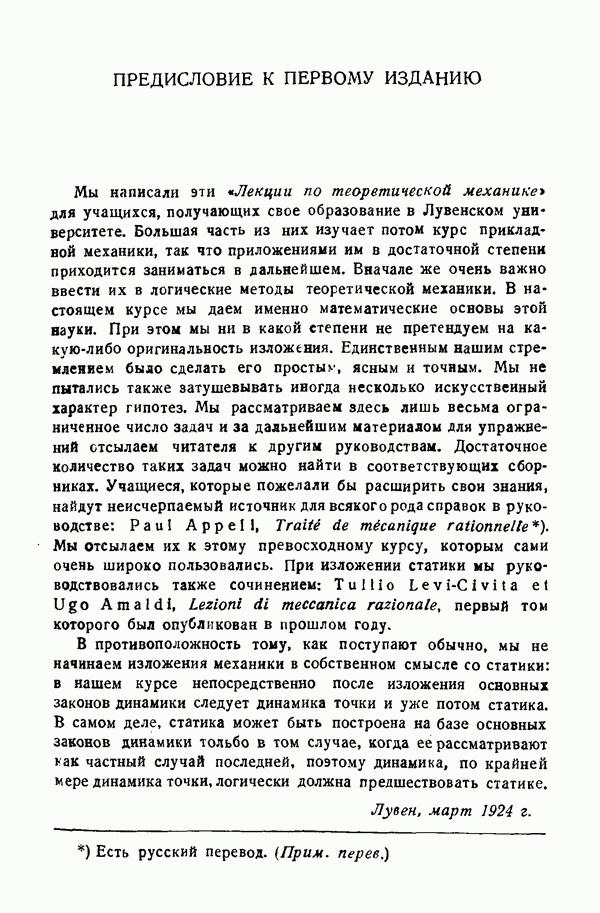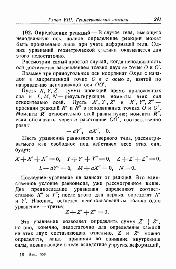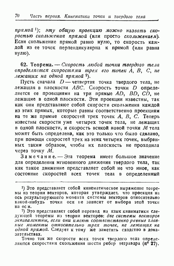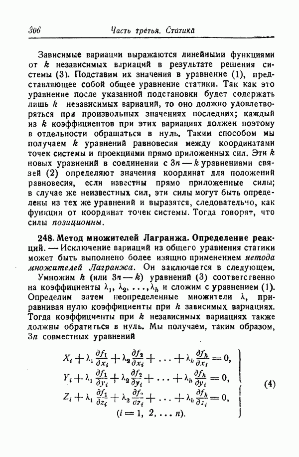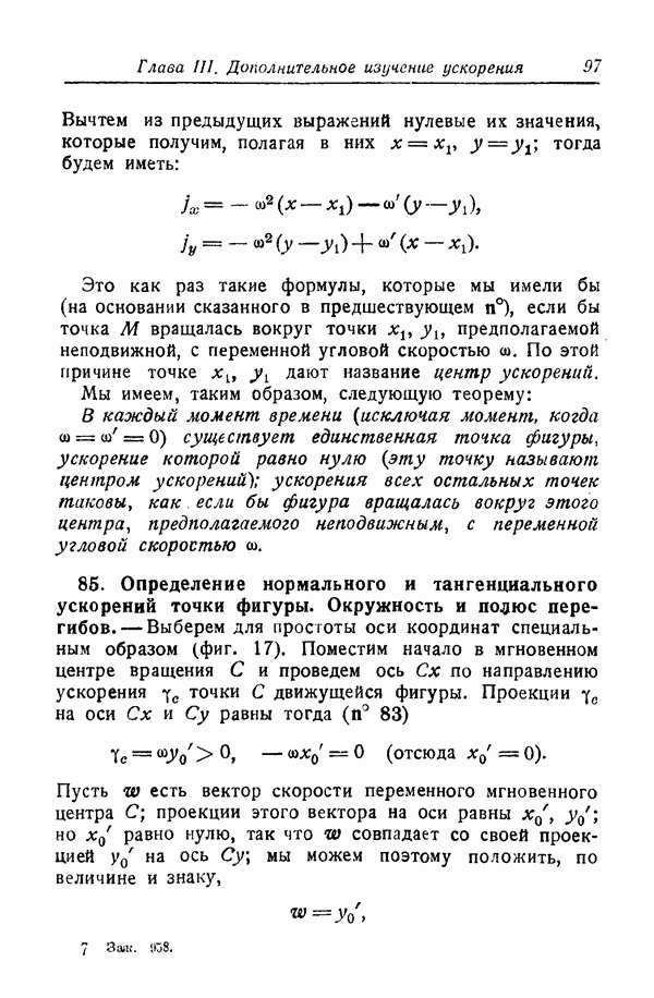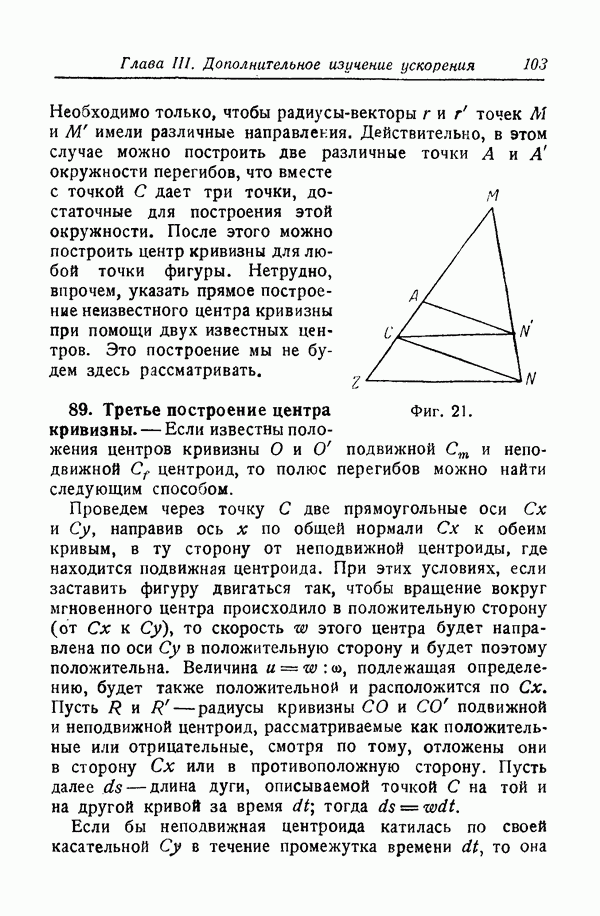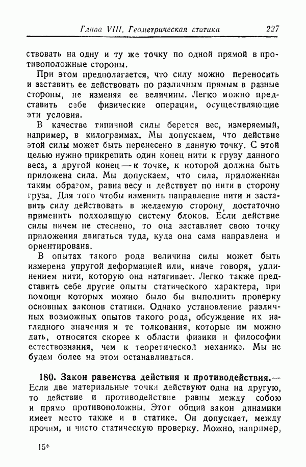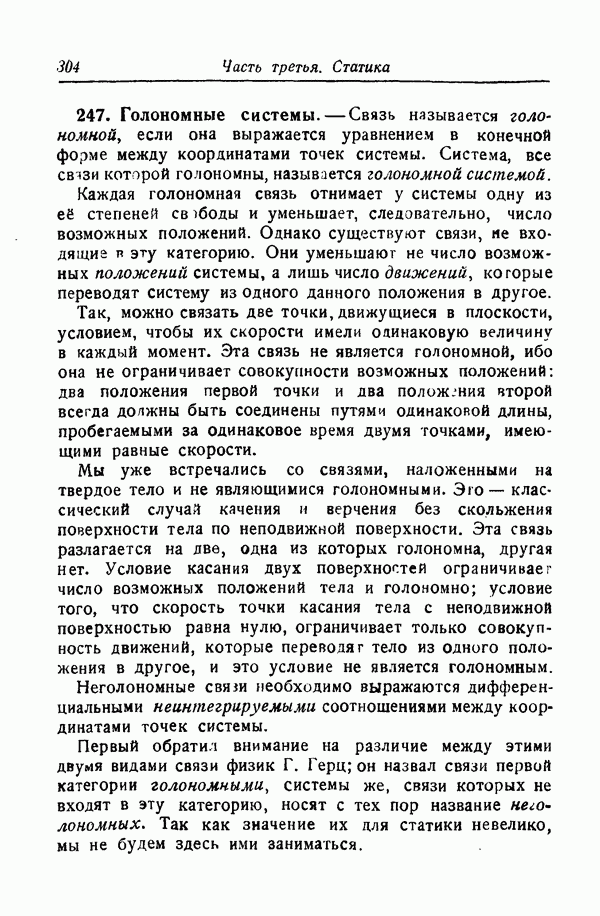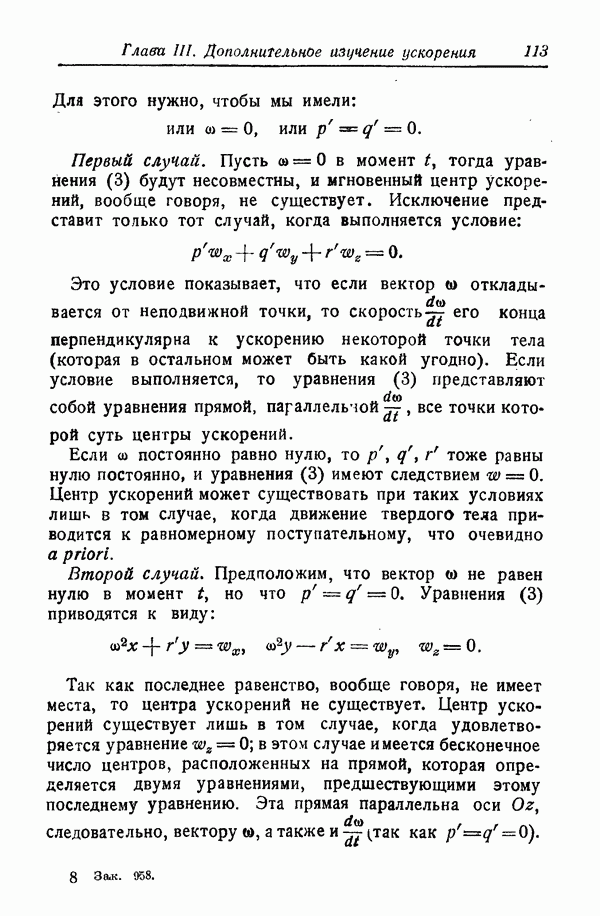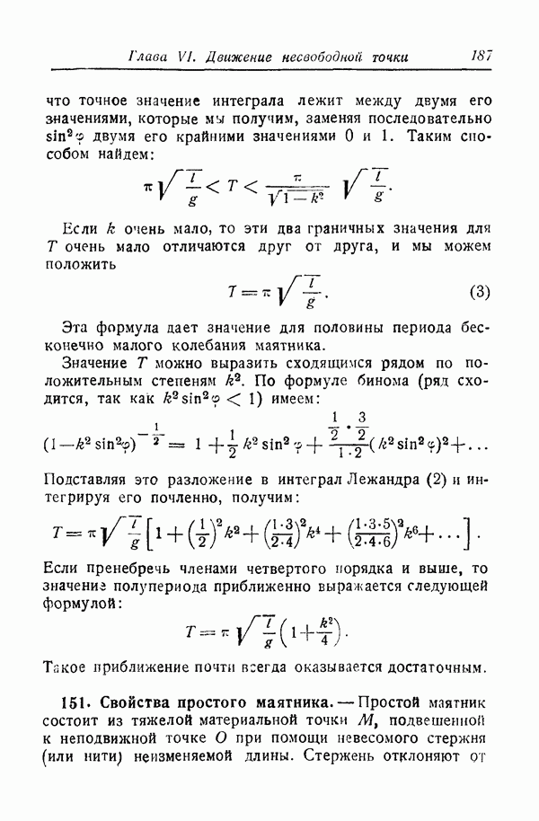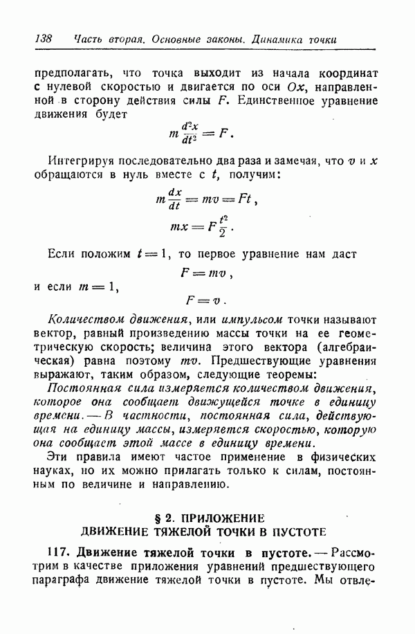 Эти составляющие обращаются в нуль одновременно с относительной скоростью 170. Сила инерции переносного движения при равномерном вращении системы отсчета.Если переносное движение есть равномерное вращение Кинетическая реакция переносного движения — 171. О применении теоремы живой силы.Теорема живой силы, как и другие теоремы динамики, может быть применена к относительному движению, если только к реальным силам присоединить две фиктивные силы: силу инерции переносного движения и сложную центробежную силу. Но работа сложной центробежной силы в относительном движении равна нулю, так как эта сила параллельна добавочному ускорению и поэтому перпендикулярна к относительной скорости; отсюда приходим к следующему заключению: Теорема живой силы может быть применена к относительному движению точки в подвижной системе осей при, условии, что к работе реальных сил прибавляется работа силы инерции переносного движения. В частности, если переносное движение есть равномерное вращение, сила инерции переносного движения совпадает с центробежной силой, вызванной этим вращением, следовательно, чтобы приложить теорему живой силы к относительному движению точки по отношению к осям, совершающим равномерное вращение, достаточно прибавить к работе реальных сил работу центробежной силы переносного движения. Это замечание часто применяется в прикладной механике, в частности, в теории вентиляторов и турбин.