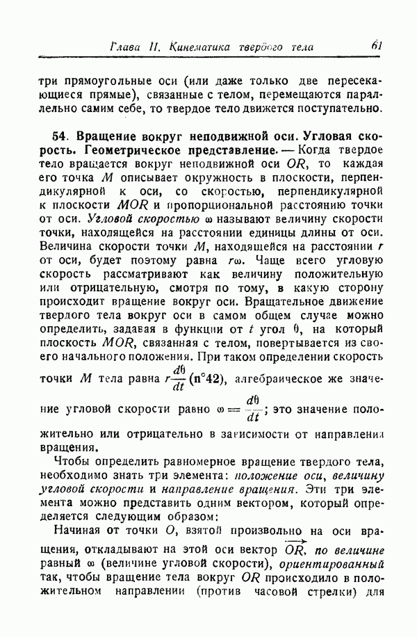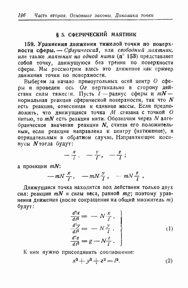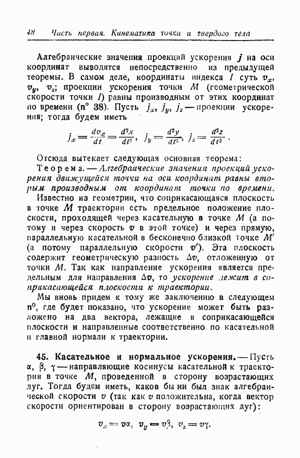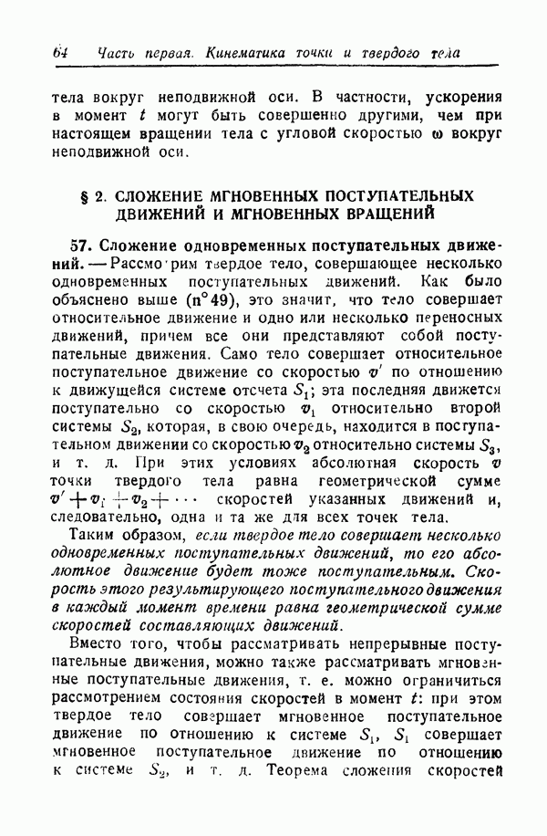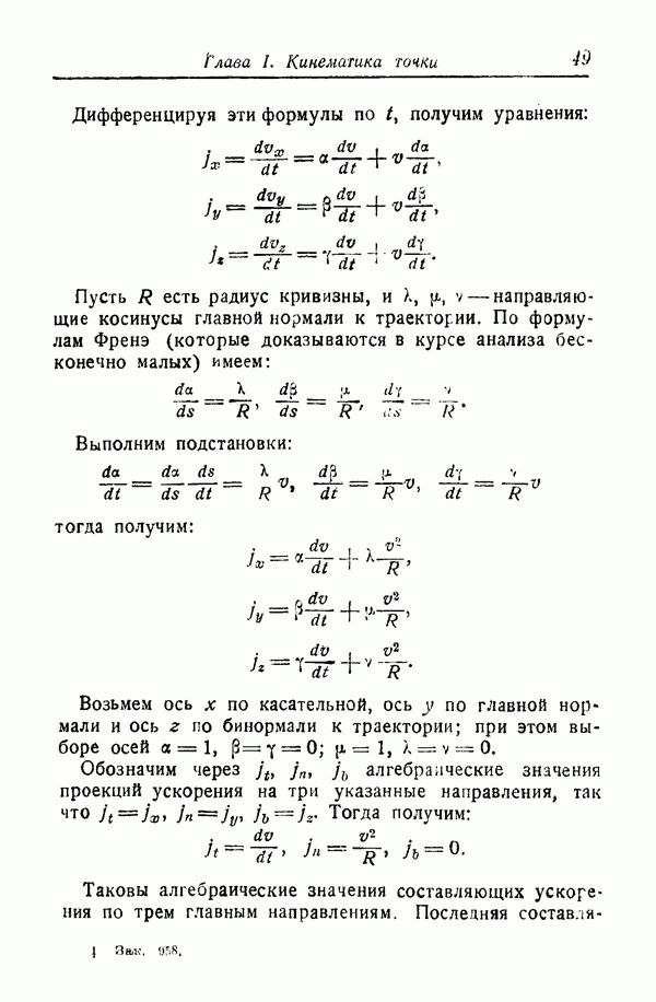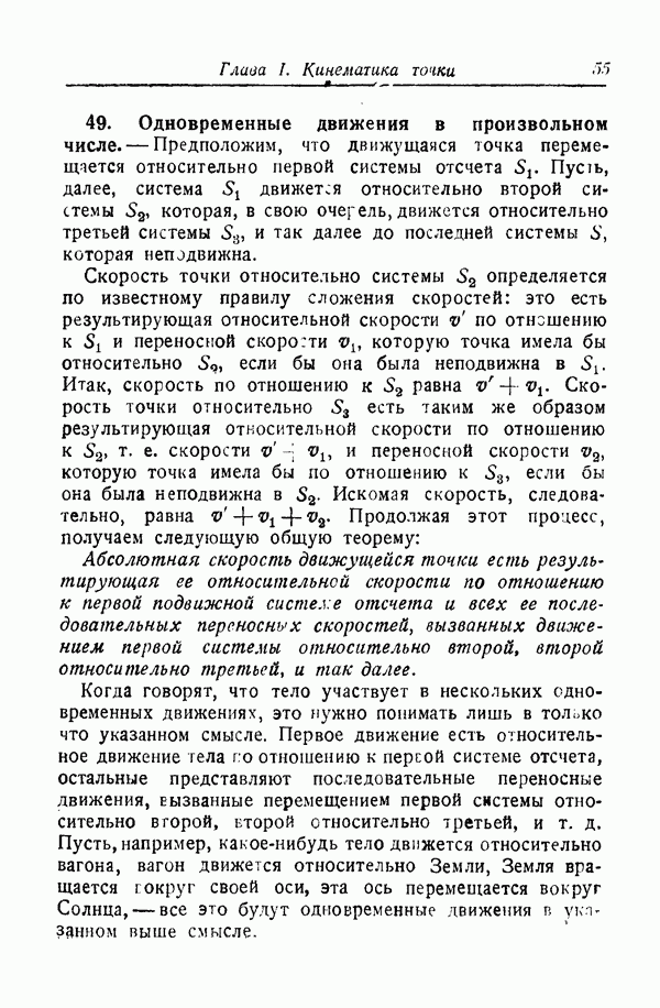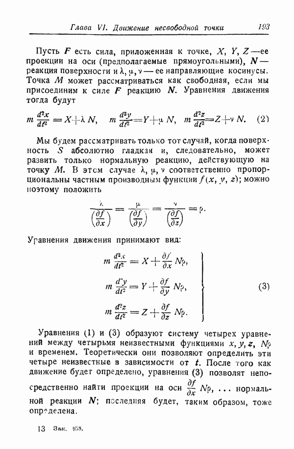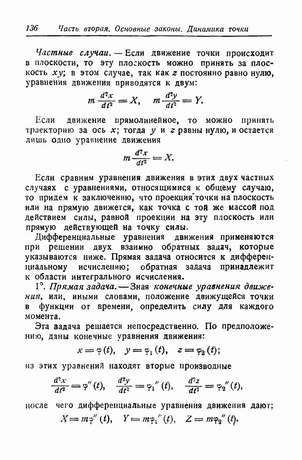 ГЛАВА VII. ОТНОСИТЕЛЬНОЕ ДВИЖЕНИЕ ТОЧКИ§ 1. УРАВНЕНИЯ ОТНОСИТЕЛЬНОГО ДВИЖЕНИЯ.167. Предварительные замечания.При выводе дифференциальных уравнений и различных свойств движения точки, которые мы изучали до сих пор, предполагалось, что рассматривается абсолютное движение, т. е. движение, отнесенное к неподвижным осям, введенным нами выше. Во многих случаях возникает необходимость определять кажущееся, или относительное движение, отнесенное к системе отсчета, движущейся по отношению к неподвижным осям. Так, в том случае, когда мы изучали движение точки вблизи земной поверхности, мы рассуждали так, как если бы Земля находилась в покое, и рассматривали это движение как абсолютвое. Остается сделать следующий шаг и оценить полученное таким образом приближение. Общая задача заключается в построении теории движения точки относительно системы отсчета, движущейся в пространстве. Мы покажем здесь, как можно получить непосредственно уравнения движения точки относительно системы отсчета, движение которой задано. 168. Дифференциальные уравнения относительного движения. Центробежная сила. Сложная центробежная сила.Пусть Пусть